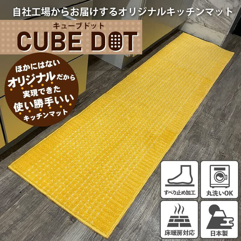 キッチンマット 日本製 洗える おしゃれ CubeDot 【CoCo Color】 (45×210, イエロー)