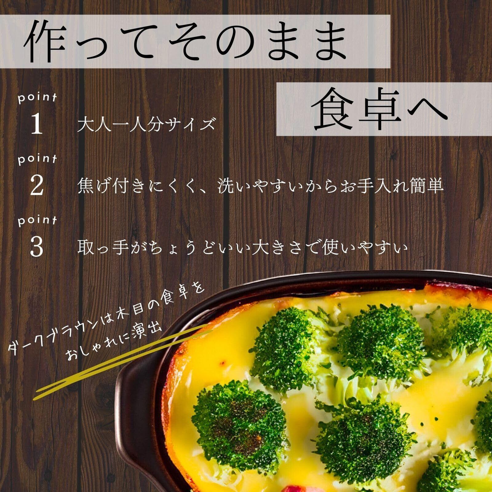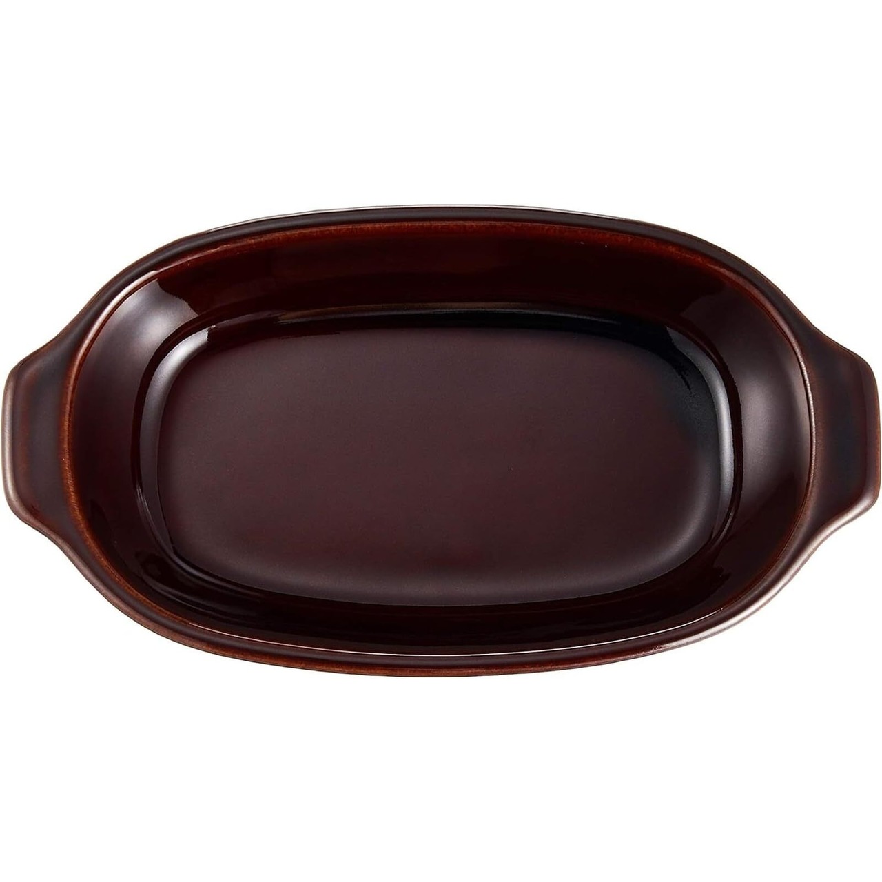三陶(Santo) 萬古焼 グラタン皿 一人用 楕円 オーバル 直径約21cm モノトーン 耐熱 陶器 オーブン対応 電子レンジ 食洗機対応 ブラウン 日本製 06282