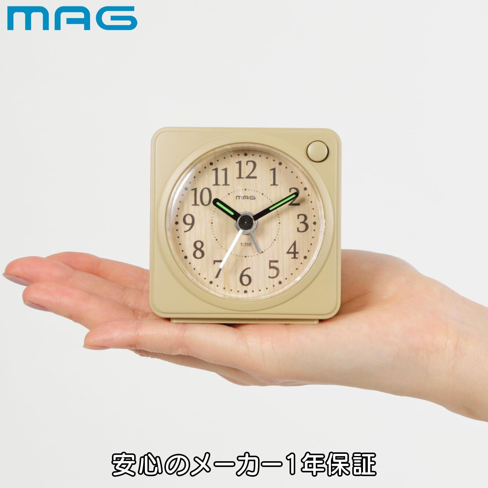 MAG(マグ) 目覚まし時計 置き時計 小型 小さい アナログ かわいい おしゃれ インテリア 静音 連続秒針 電子音 アラーム スヌーズ ライト ナチュラル ミニモク T-736 N-Z ノア精密
