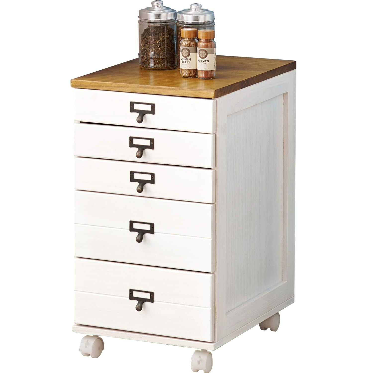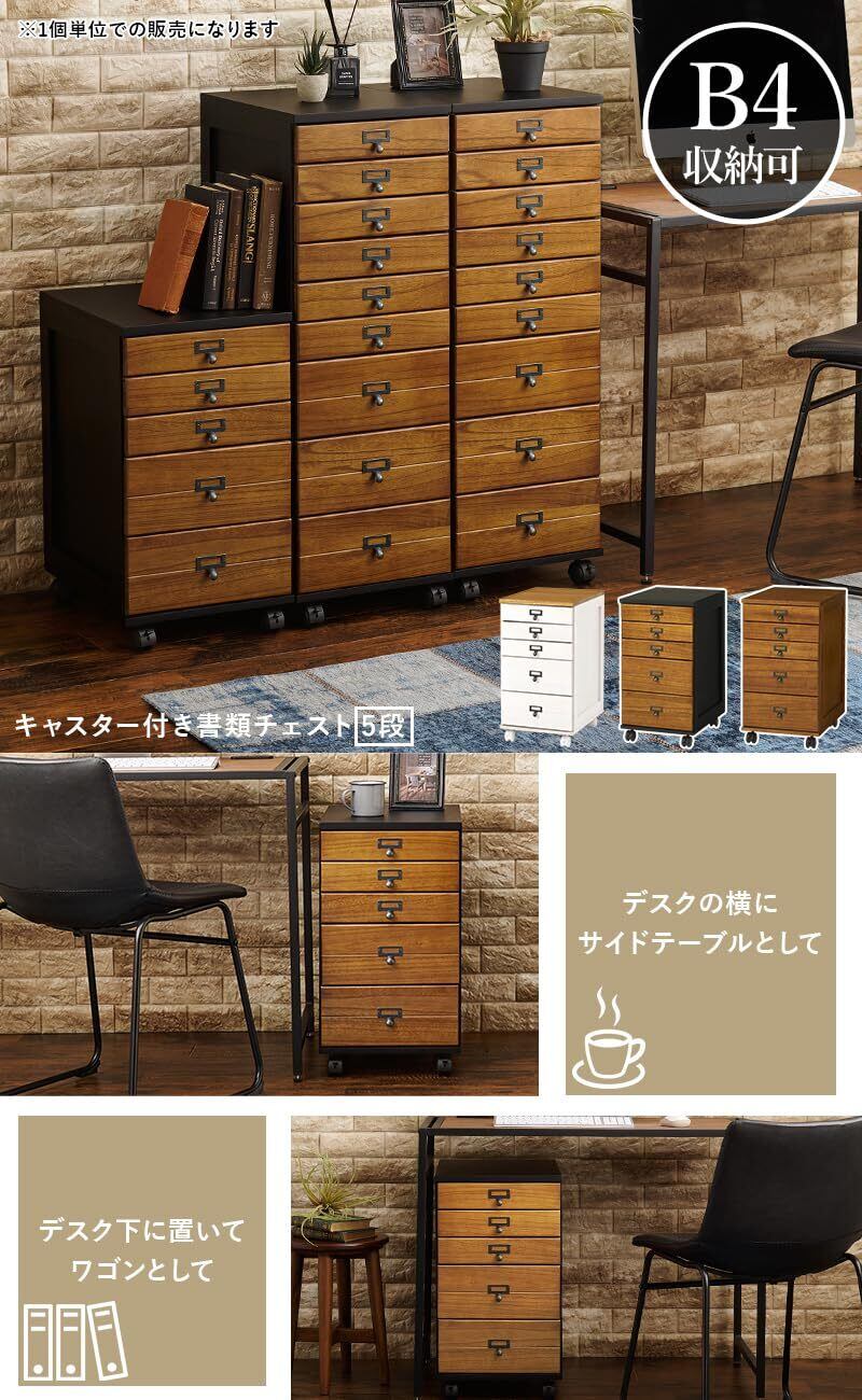 萩原 多段チェスト 書類チェスト 書類 棚 B4 引出5段 【すぐに使えるほぼ完成品】キャビネット ドキュメント 天然木 ネームプレート付 キャスター付 ナチュラルホワイト MCH-6470NW