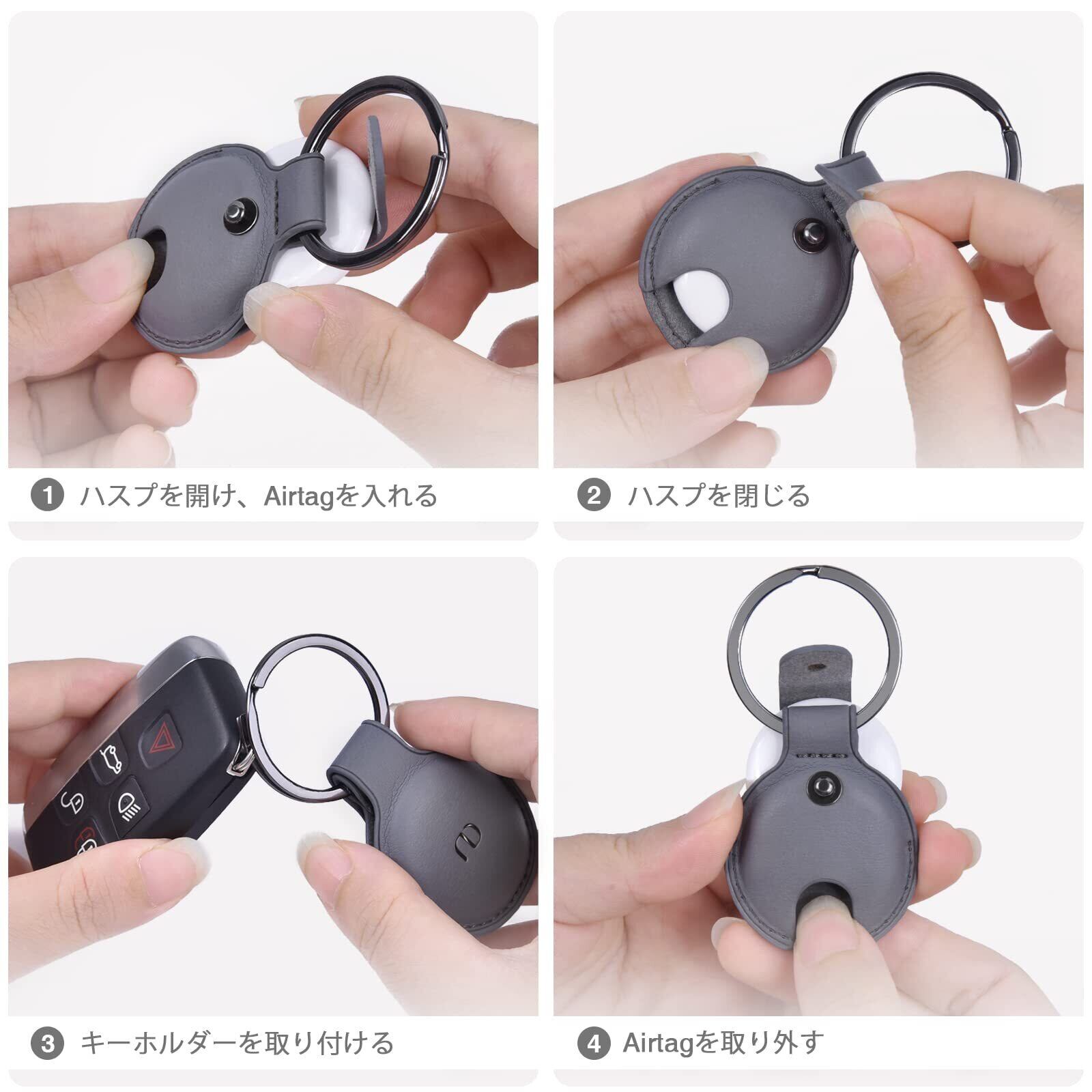NEREIDES Airtag ケース キーホルダー エアタグケース PUレザー キーリング キーチェーン 紛失防止 便利 量軽 おしゃれ 鍵ファインダー キー・ペット・鞄など対応 (GREY)