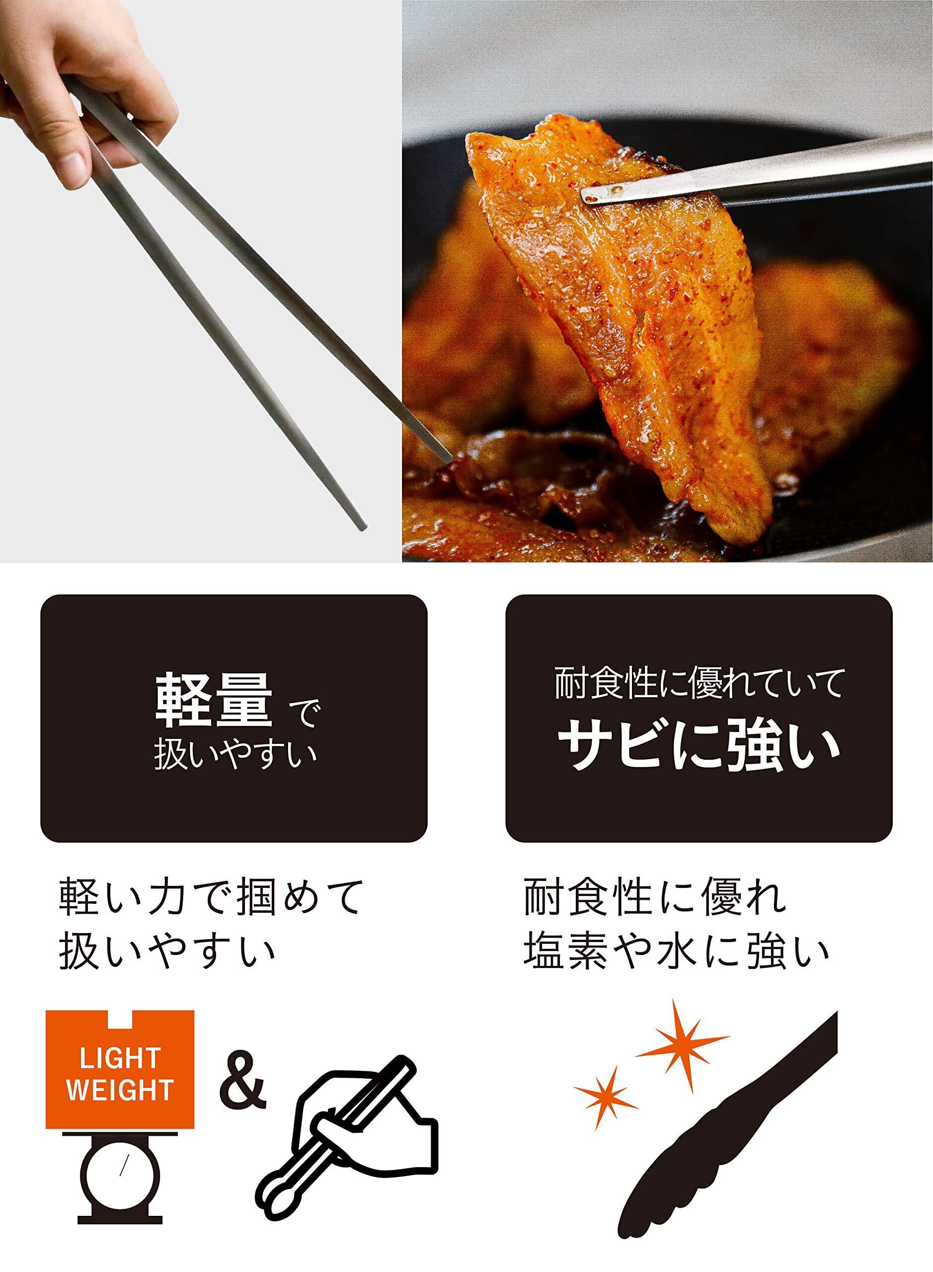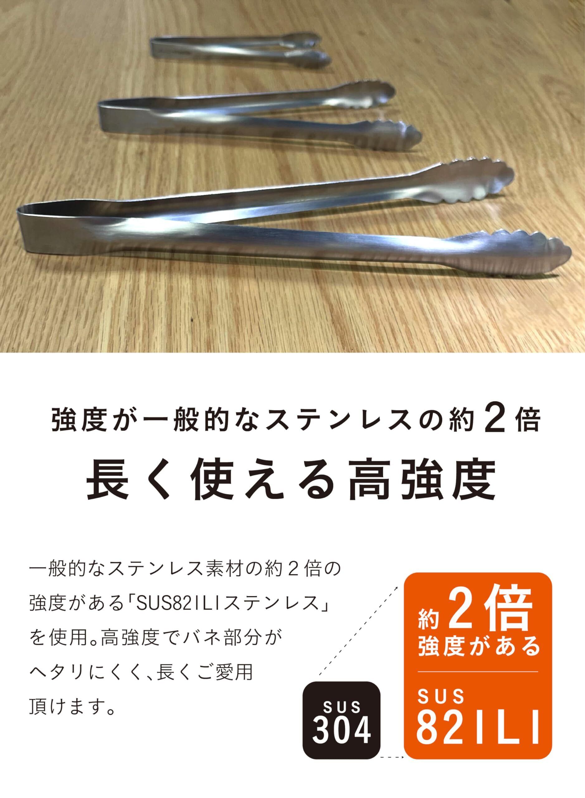 一般的なステンレス素材に比べ、食材を掴むときも軽量で扱いやすい「SUS821L1ステンレス」を使用しています。