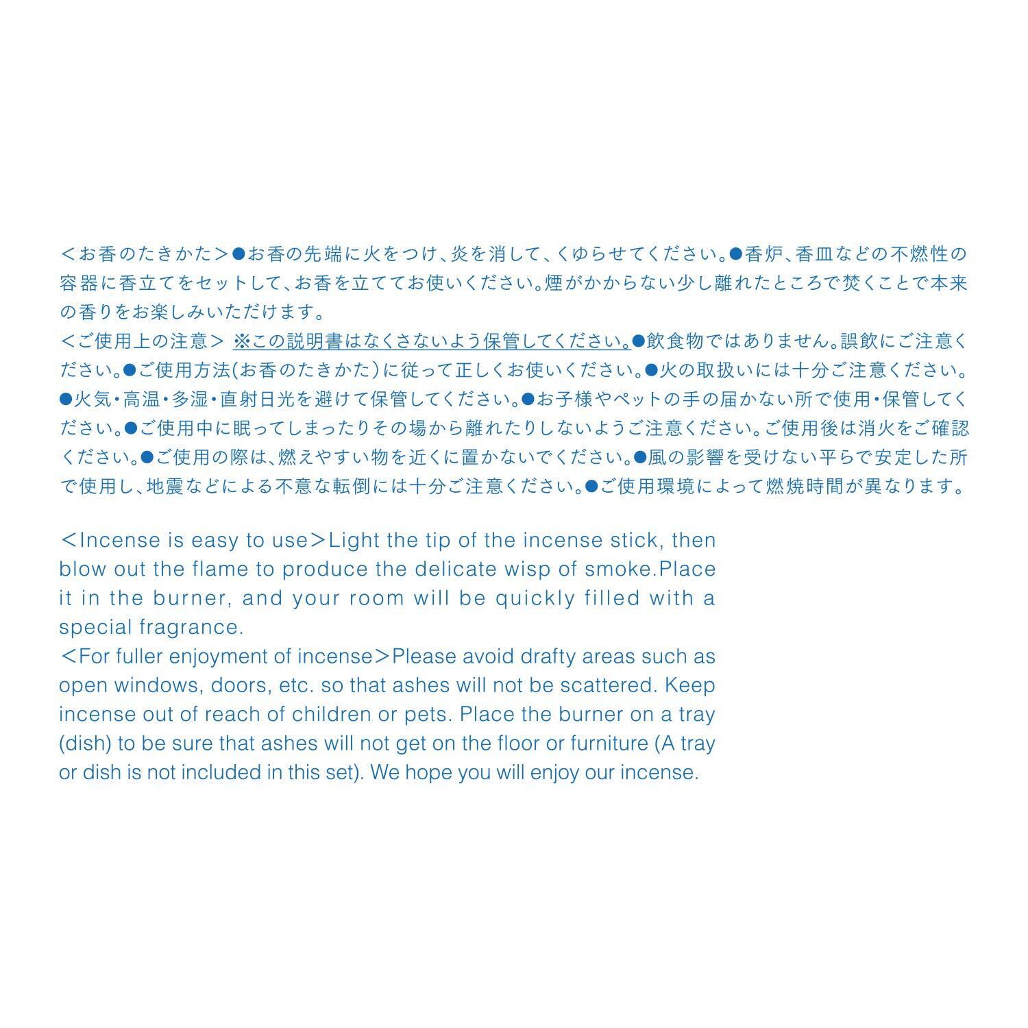 ●香炉、香皿などの不燃性の容器に香立てをセットして、お香を立ててお使いください。煙がかからない少し離れたところで焚くことで本来の香りをお楽しみいただけます。