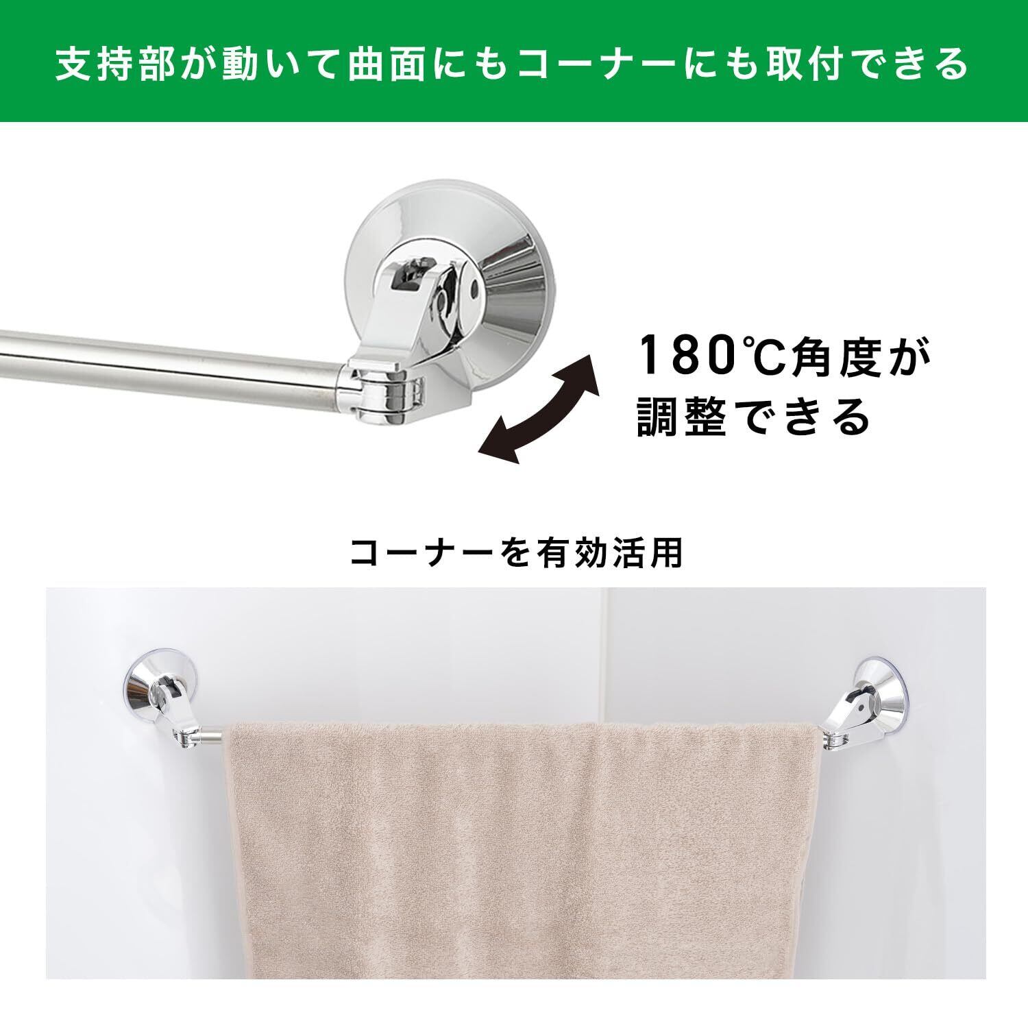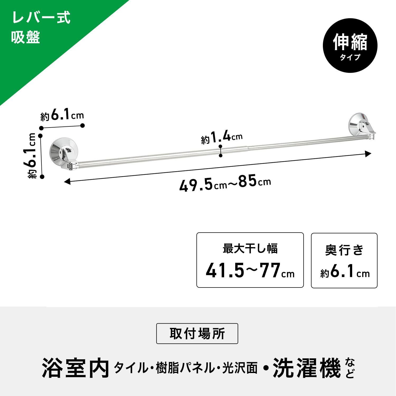 レバー式 強力 吸盤 伸縮 タオル掛け ステンレス 伸縮幅 49.5~85cm(干幅41.5~77cm) 耐荷重4kg バスタオルサイズ