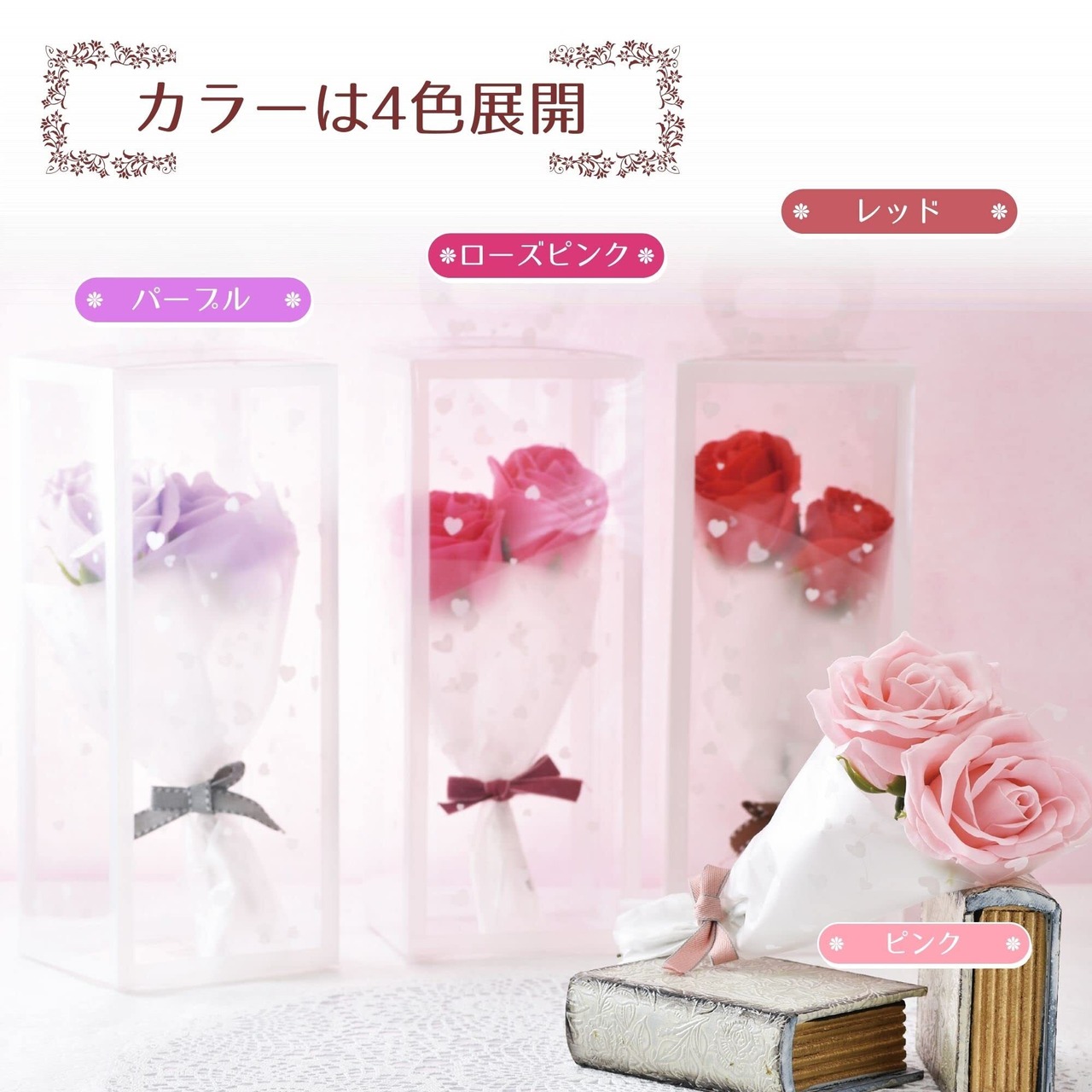 ポピー名古屋 ソープフラワー シャボンフラワー 造花 ギフト プレゼント 2輪ブーケ バラ 花束 約29cm クリアケース付き SBL-151 パープル