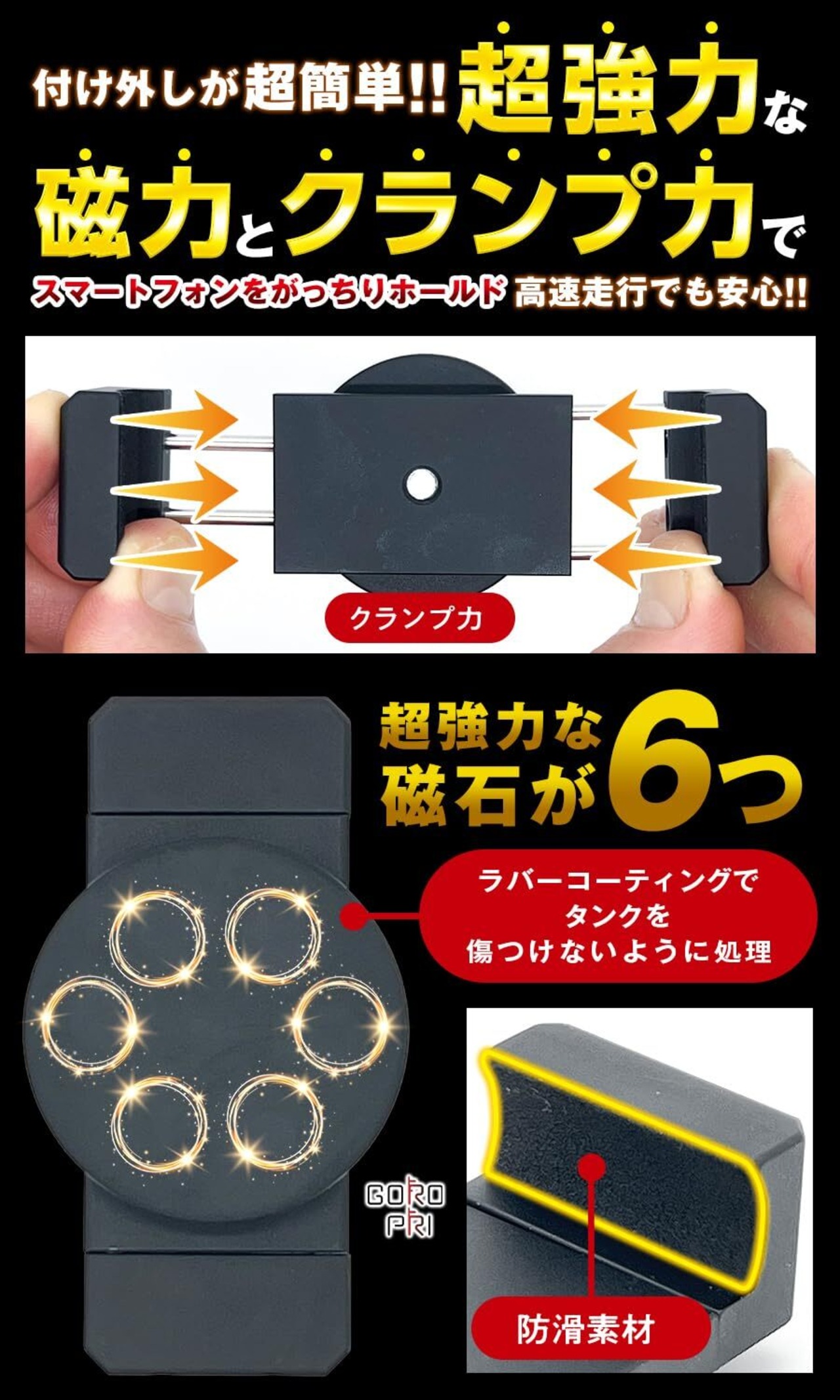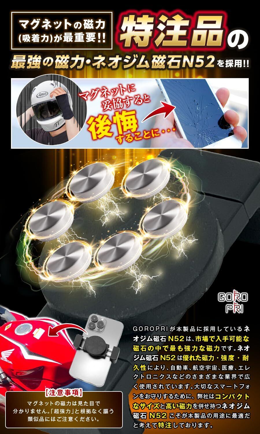 【新着商品】【GOROPRI】バイク スマホホルダー マグネット バイク用スマホホルダー 超強力 マグネット式 燃料タンクにワンタッチで貼付け カメラアクセサリ スマホマウント PUレザー収納袋付き (ブラック) | ニコニコSHOP