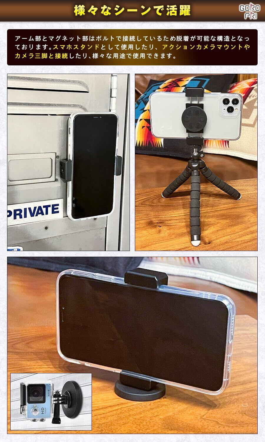 【様々シーンで活躍】スマホホルダーとしてだけではなく、スマホスタンドとして使用したり、アクションカメラやカメラ三脚と接続したり、様々な用途で使用できます‼※本製品はマウント部(スマホマウント)とマグネット部(ネジ付きマグネット)の2つのパーツのセット販売です。組み立てた方次第で色々な用途で使用できます‼