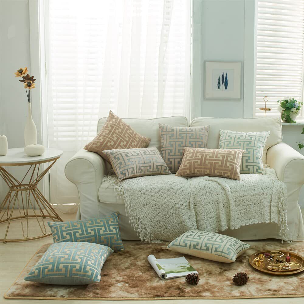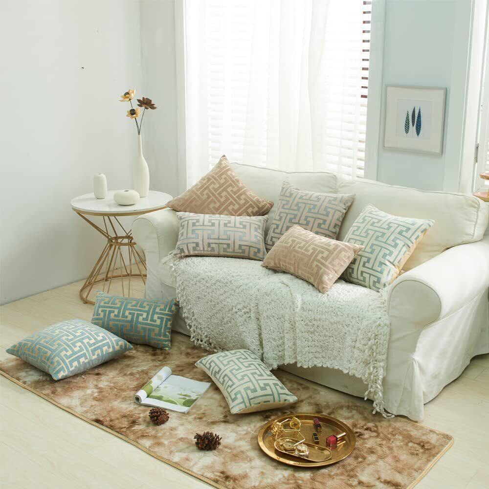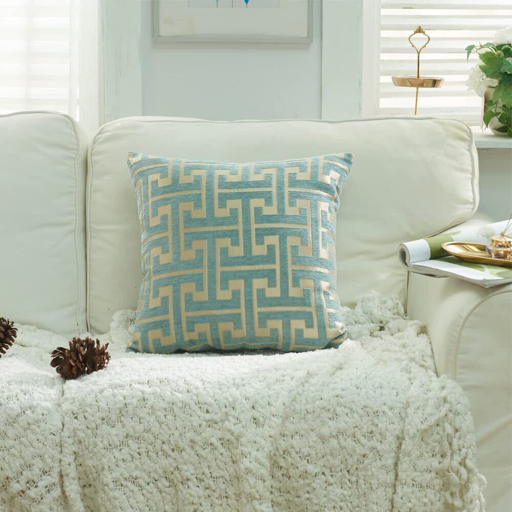 【在庫セール】YunJeude クッションカバー 45×45cm シェニール生地 幾何学模様 柄 おしゃれ 柔らかい北欧 可愛い ピロケース 車 椅子 インテリア飾り 2枚セット (カーキ&ライトブルー, 45×45) | ニコニコSHOP