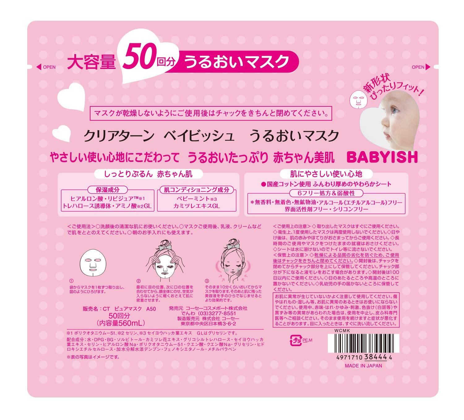 クリアターン ベイビッシュ うるおい フェイス マスク 50回分 + サンプル付 フェイスパック フェイスマスク 3) ベイビッシュ 50シート (x 1)
