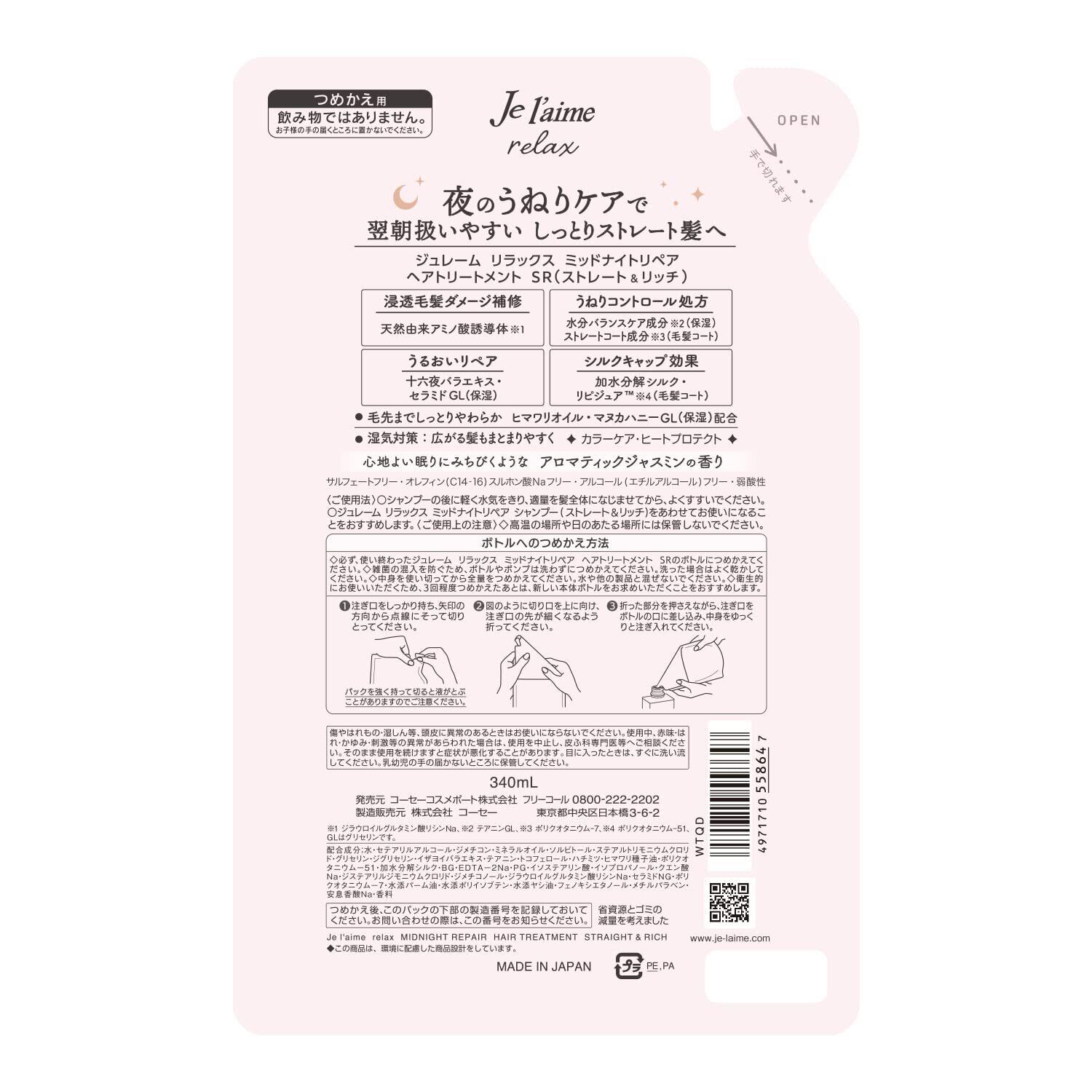 ジュレーム リラックス ミッドナイトリペア ヘアトリートメント (ストレート&リッチ) つめかえ 340ml×2個セット しっとり ストレート うねりケア カラーケア アロマティックジャスミンの香り ノンシリコン + おまけ付 KOSE
