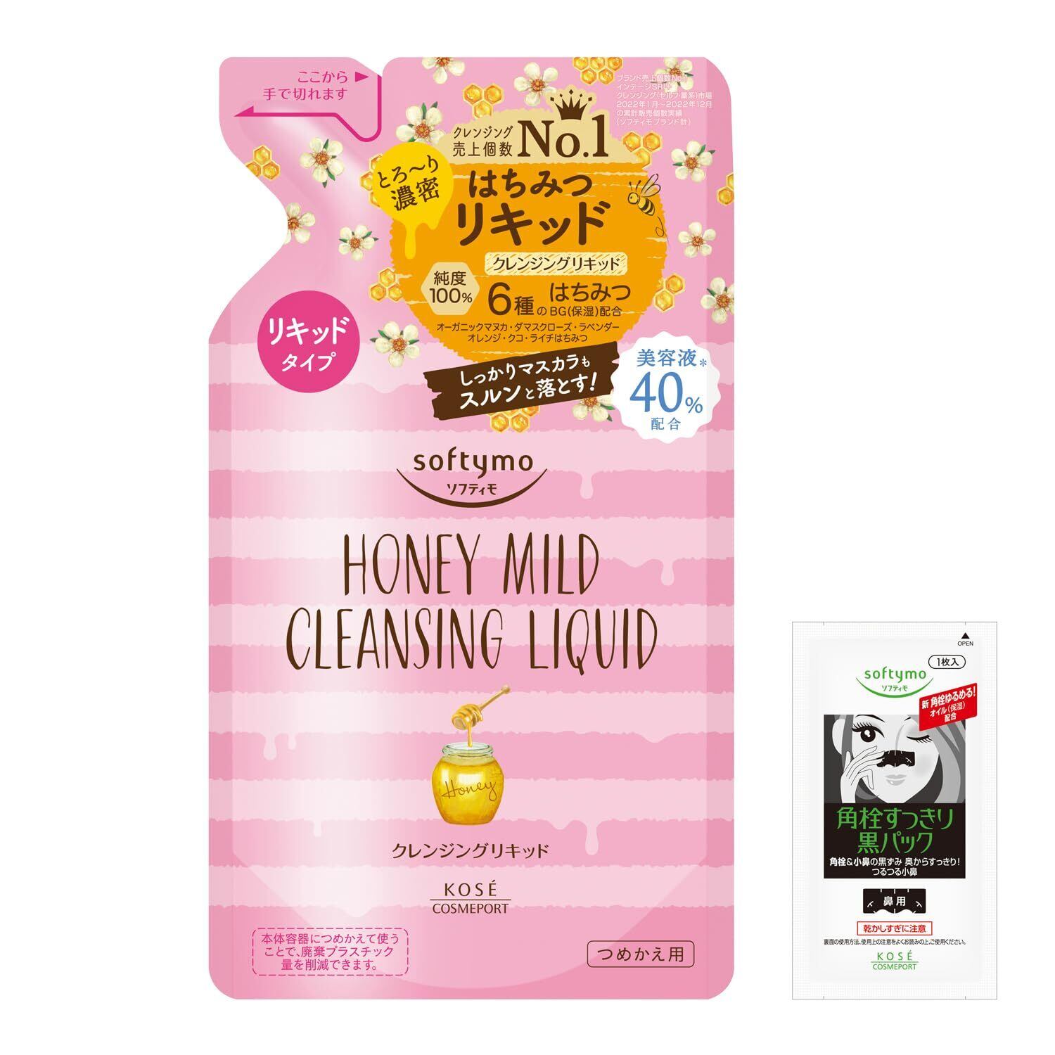 ソフティモ KOSE クレンジングリキッド (ハニーマイルド) つめかえ 200mL 鼻用角栓パック おまけ付 うるおい