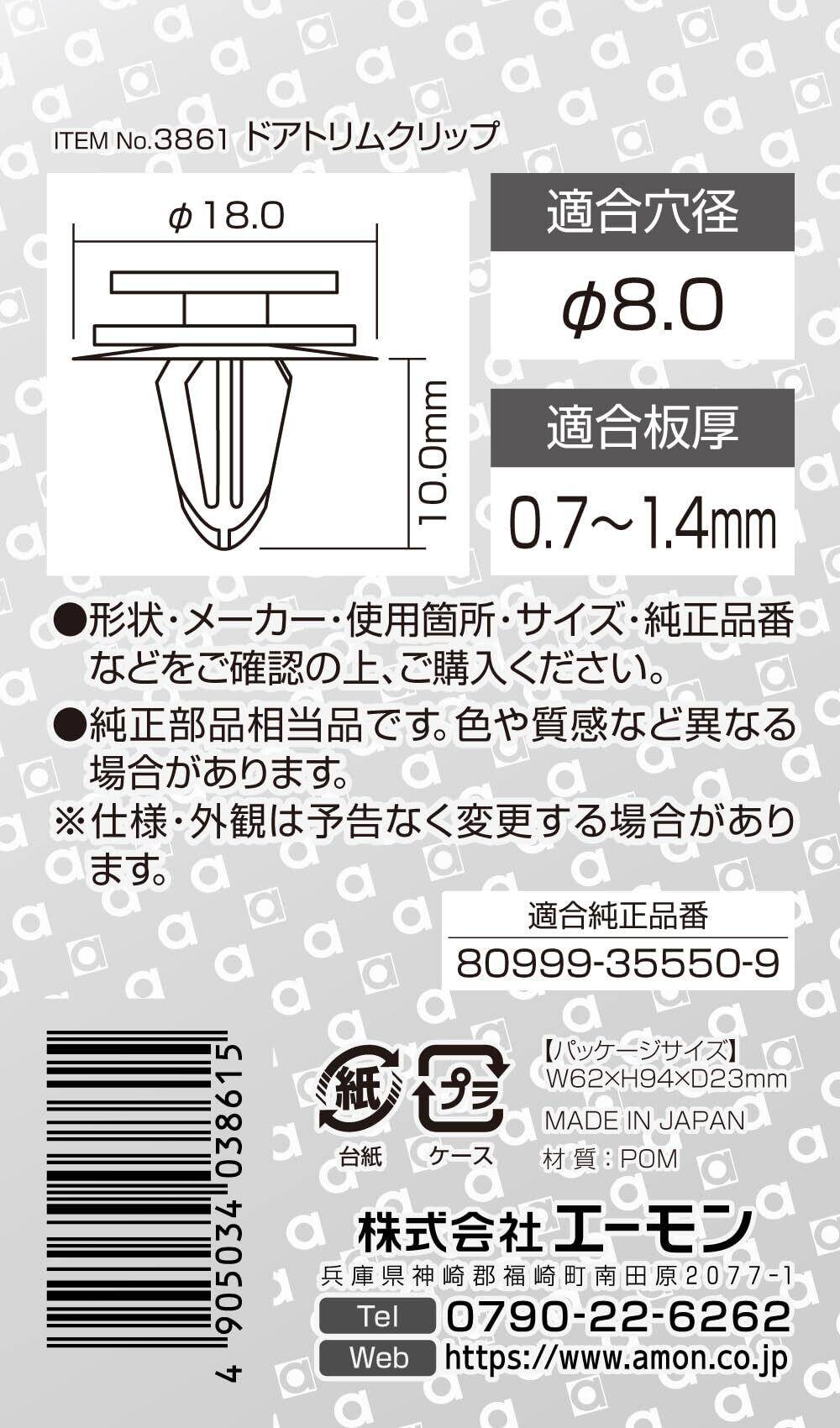 エーモン(amon) ドアトリムクリップ (日産車用) ドアトリム用 5個入 カーファスナー クリップ 内張りピン 3861