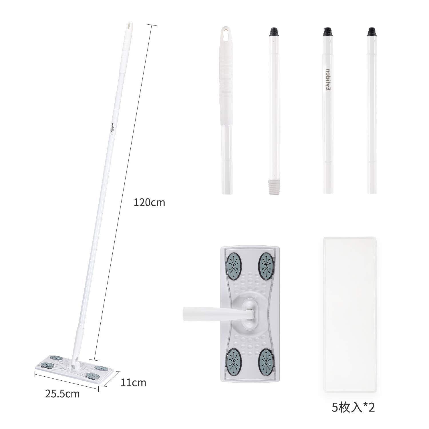 【長さ調整可能】:フロアワイパーは、掃除の場所によって組み立てられるパイプの本数を変え、柄の長さを調整することができます。