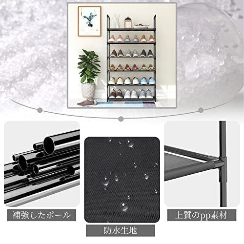 【良い素材を使用】スチール・プラスチック製で強化した不織布棚は、通気性に優れて、防水もできます。普段のお手入れが簡単になります。シューズラック底部は床からも約5cm離れているので、湿気やホコリ等がつきにくいです.汚れても水洗いが可能です。