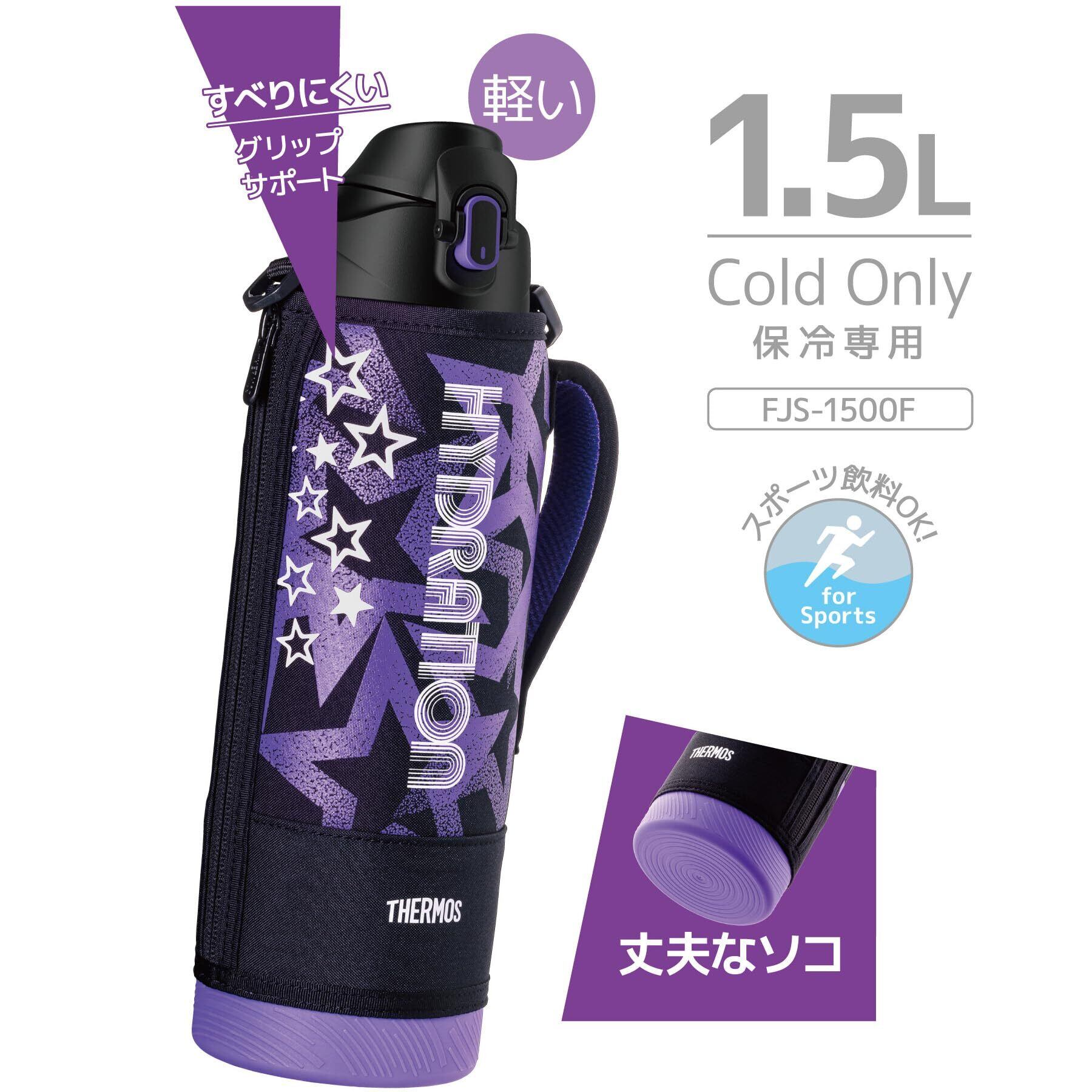 サーモス 水筒 真空断熱スポーツボトル 1.5L ブラックパープル 保冷専用 子供用 ポーチ付き 肩に優しいストラップ FJS-1500F BKPL