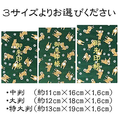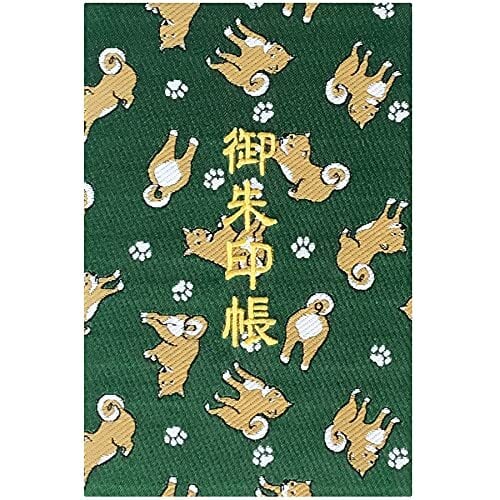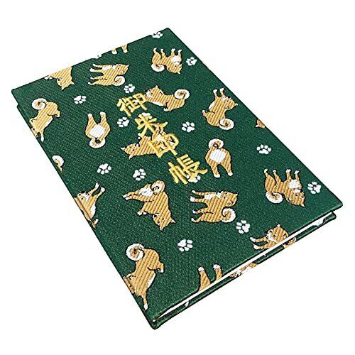 千糸繍院 御朱印帳L【緑柴犬散歩】西陣織 金襴装丁/刺繍文字 蛇腹式48ページ 大判 (金色刺繍文字/生成り本文)
