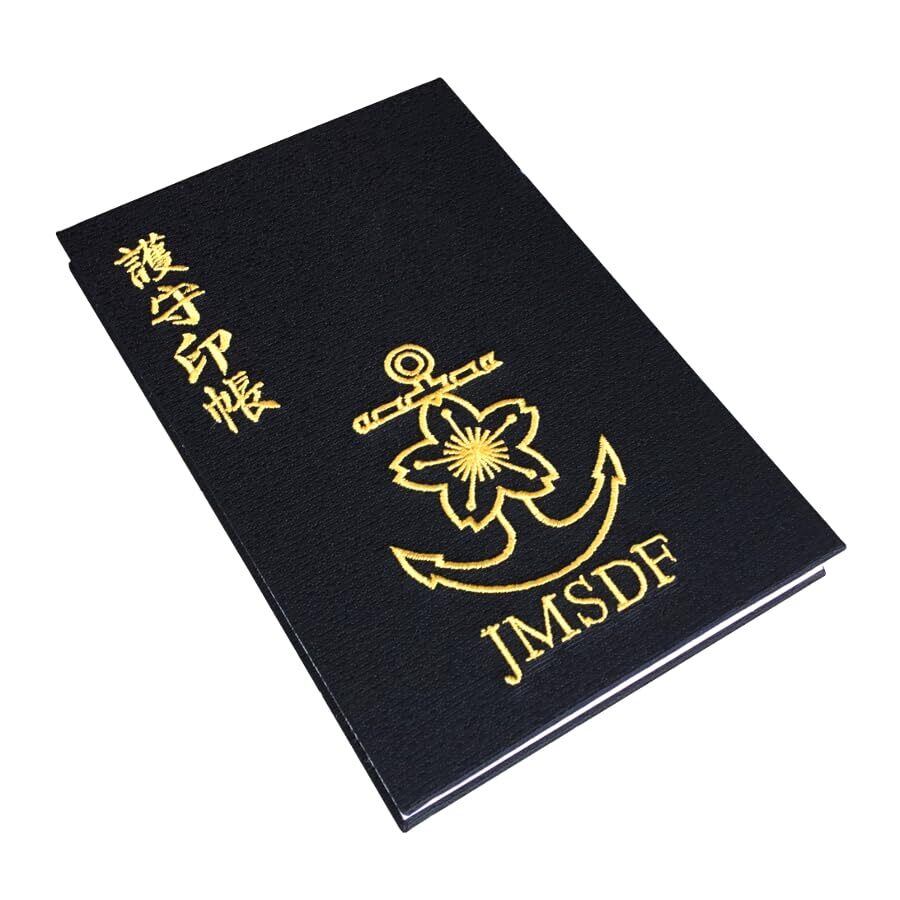 おもて表紙生地に「護守印帳」文字と「海上自衛隊ロゴマーク」、うら表紙生地には「たなびく自衛隊艦(旭日旗)」の刺繍入れを行い、1冊1冊を丁寧に手作業にて仕上げています。