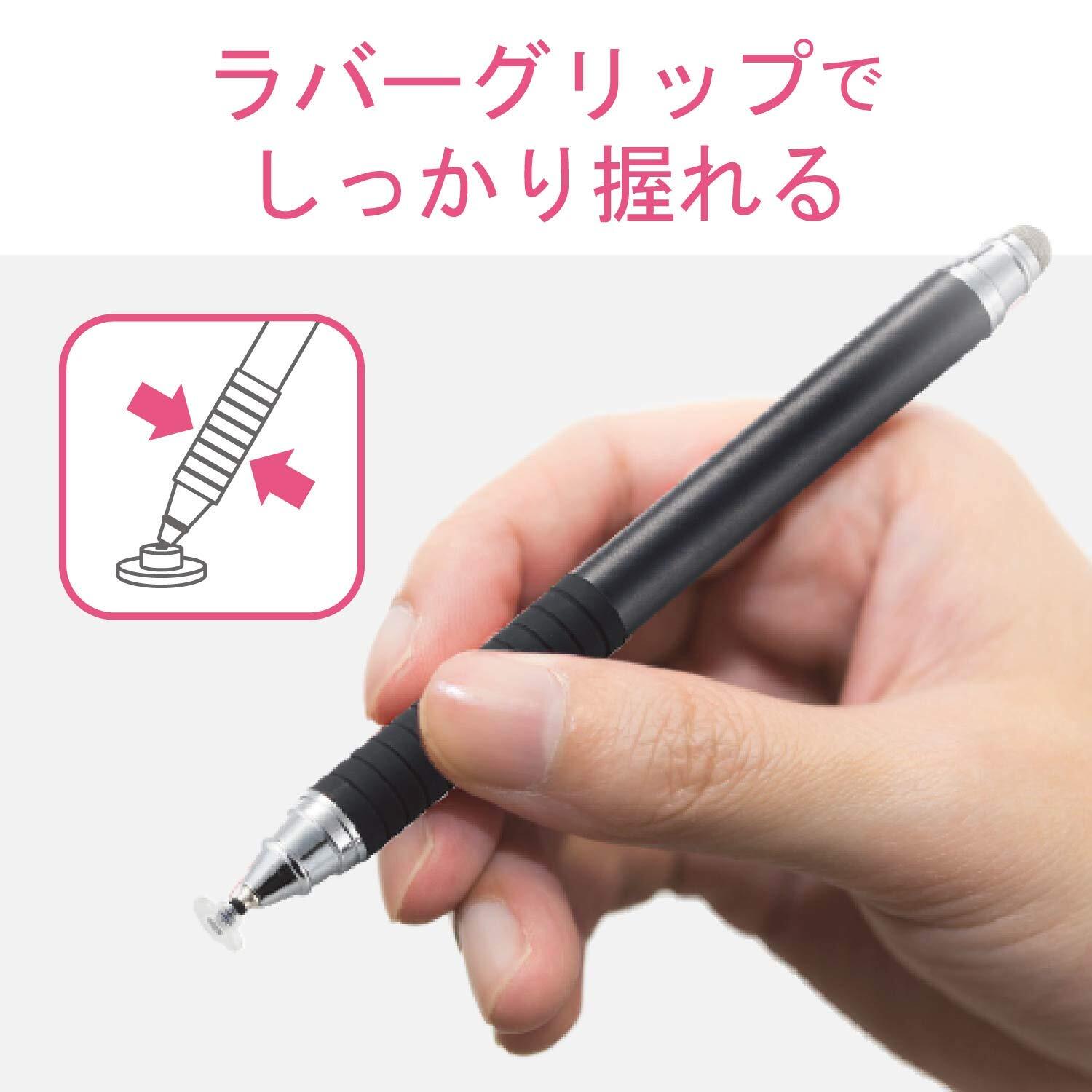エレコム タッチペン スタイラスペン 【iPad/iPhone/Android スマホ・タブレット各種対応】 2WAYモデル 導電繊維 & ディスク 交換ペン先付 ブラック PWTP2WY01BK