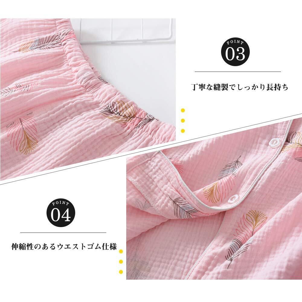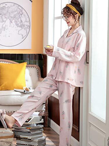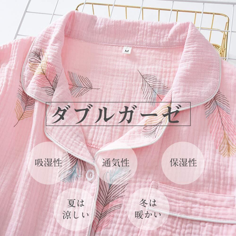 [ヒルトップクラウド] パジャマ 綿100% 二重ガーゼ レディース ルームウェア 長袖 上下セット 前開き 吸汗通気 肌に優しい 部屋着 かわいい 春夏秋冬用