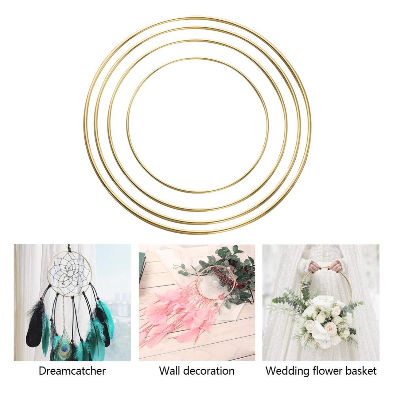 TOYMYTOY ドリームキャッチャーDIYクラフト リングフープ リームキャッチャーリングのフープ 金属リング 丸い金属 フープ 壁掛け飾り 車飾り DIY 工芸品 風鈴 花輪 捕夢網など適用 4ピース