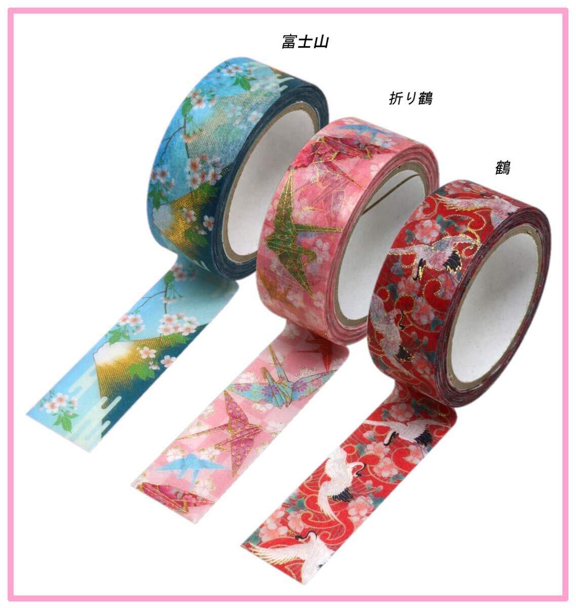 【数量限定】カミイソ 日本製 和紙 マスキングテープ kimono美 3巻 (鶴・折鶴・富士山) セット 幅15mm×7m巻 和柄 デザインテープ リメイク アレンジ GR-0508 | ニコニコSHOP
