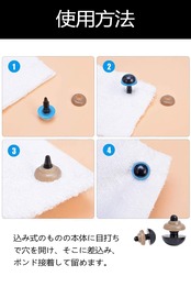 【使用方法】差込み式のものの本体に目打ちで穴を開け、そこに差込み、ボンド接着して留めます。使いやすく、様々人形、テディベアやぬいぐるみなどに適す。