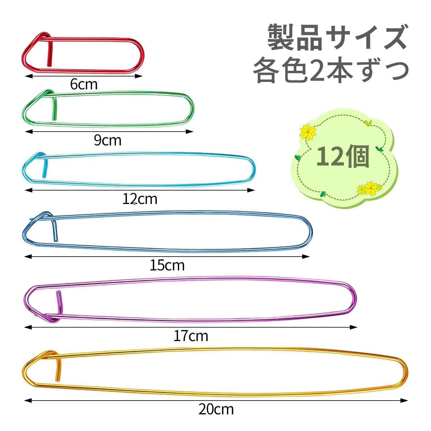 ほつれ止め 安全ピン大 編み物 道具 12枚セット 6サイズ 大 中 小 段数マーカー 安全ピン 編み物ツール アルミ合金 かぎ針編み 編み物道具 カラフル(各サイズ2個)