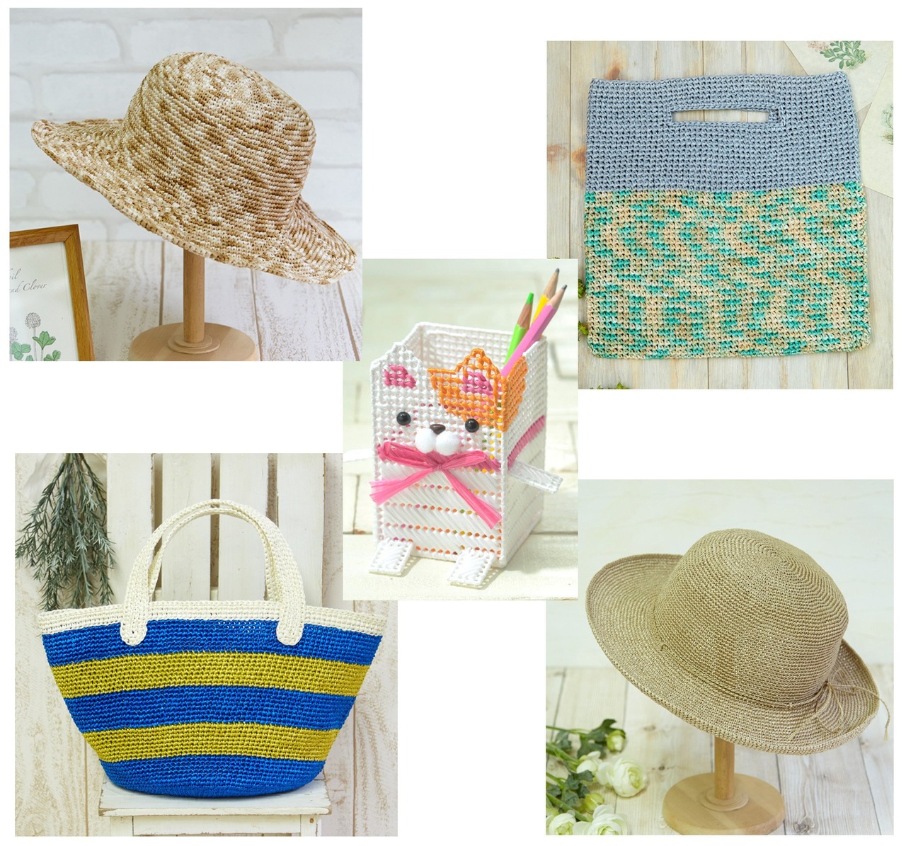 バッグ、帽子、インテリアまで幅広く使える春夏手芸の代表格、エコアンダリヤの半分の太さの毛糸です!