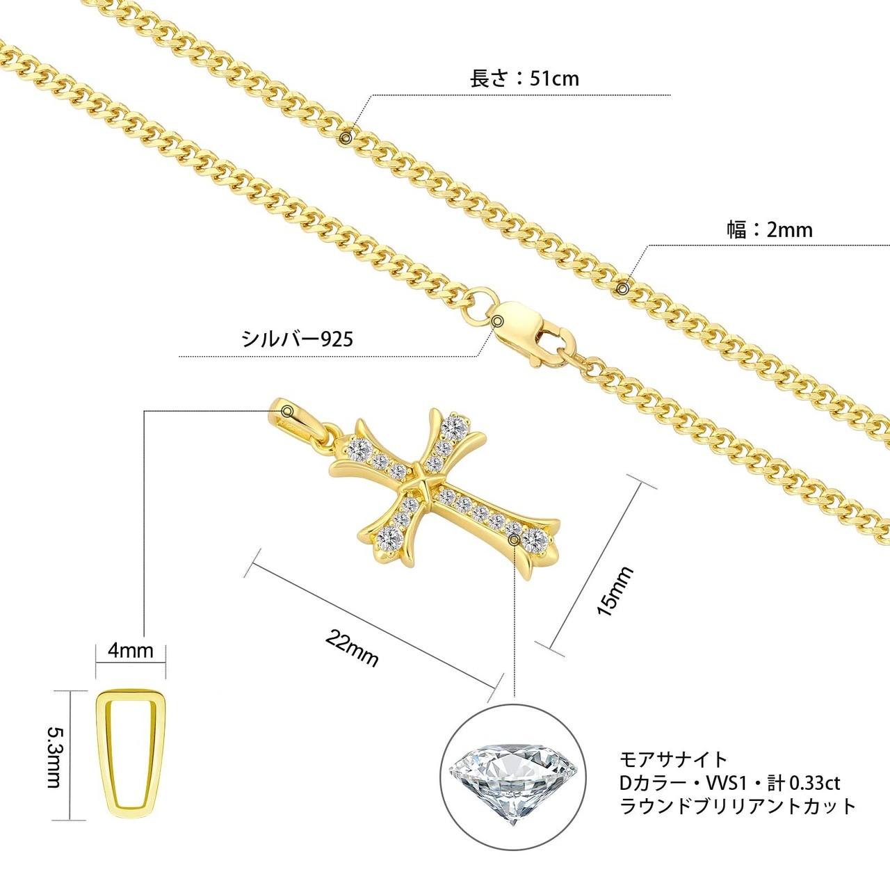 【ダイヤモンドより輝く】15石のモアサナイト(トータル0.33カラット)を贅沢にクロスに留めたクロスモチーフネックレス。モアッサナイトは、ダイヤモンドを超える輝き・汚れにくい・欠けにくい性質を持っています。見た目と成分が本物ダイヤに1番近いし、ダイヤモンドよりも2.5倍輝くとも言われ、海外では最近人気急上昇の宝石です。