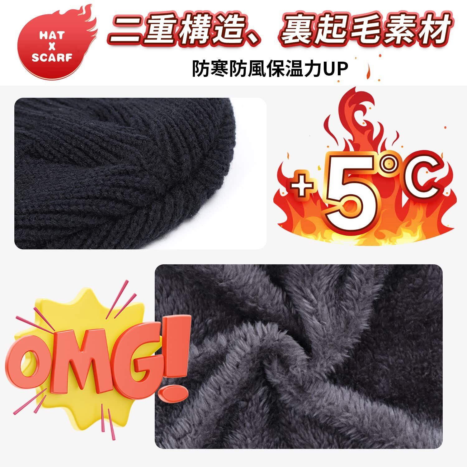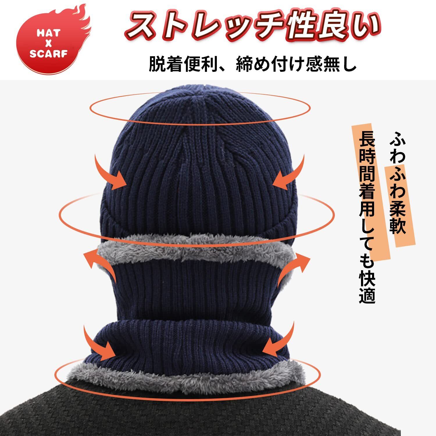 [WindTour] ニット帽 ネックウォーマー 2点セット 冬 ニットキャップ ビーニーキャップ ニットスヌード ネックガード 暖かい 裏起毛 防寒 帽子 保温 裏ボア 通勤通学・バイク・自転車・スキー・スポーツ・アウトドア 冬用 男女兼用