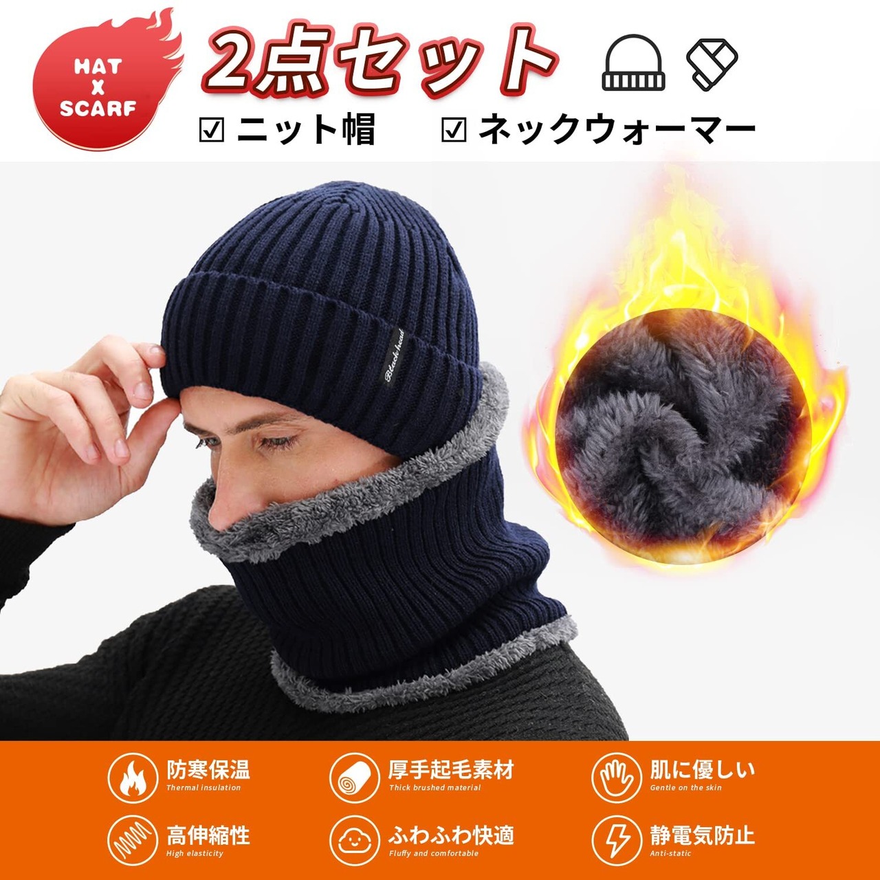 防寒効果抜群なニット帽&ネックウォーマー 2点セット