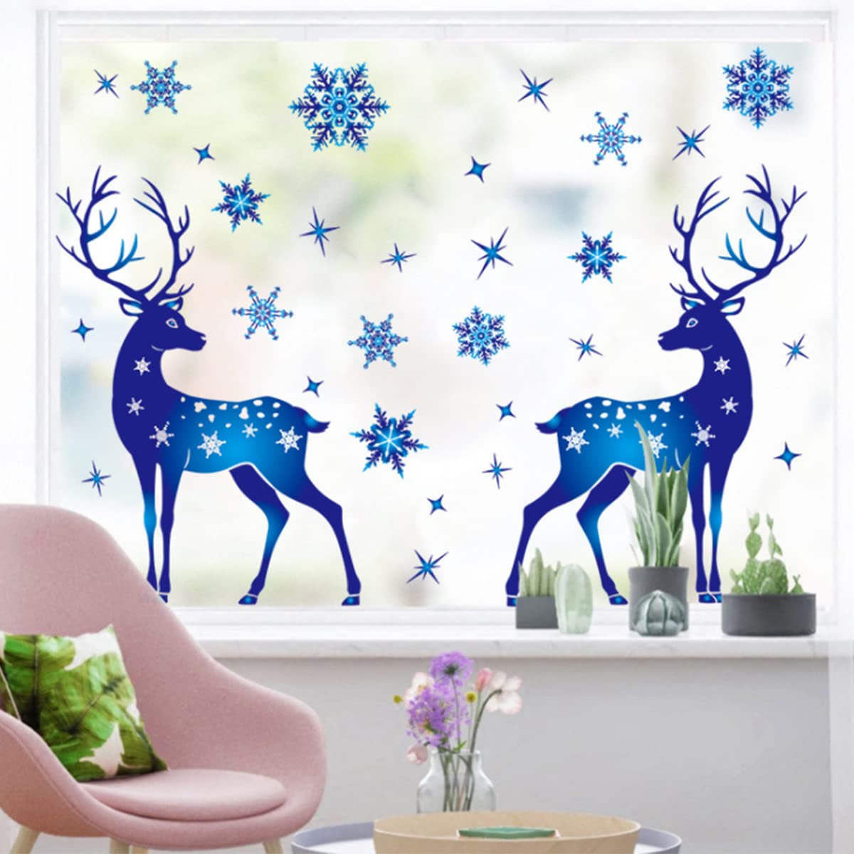 【数量限定】Lanito クリスマス ステッカー クリスマスの静電気ステッカー クリスマストナカイステッカー 雪の結晶シール Merry Christmas シール 5セット 防水 剥がせる 店舗装飾 窓ステッカー 部屋 窓 飾り | ニコニコSHOP