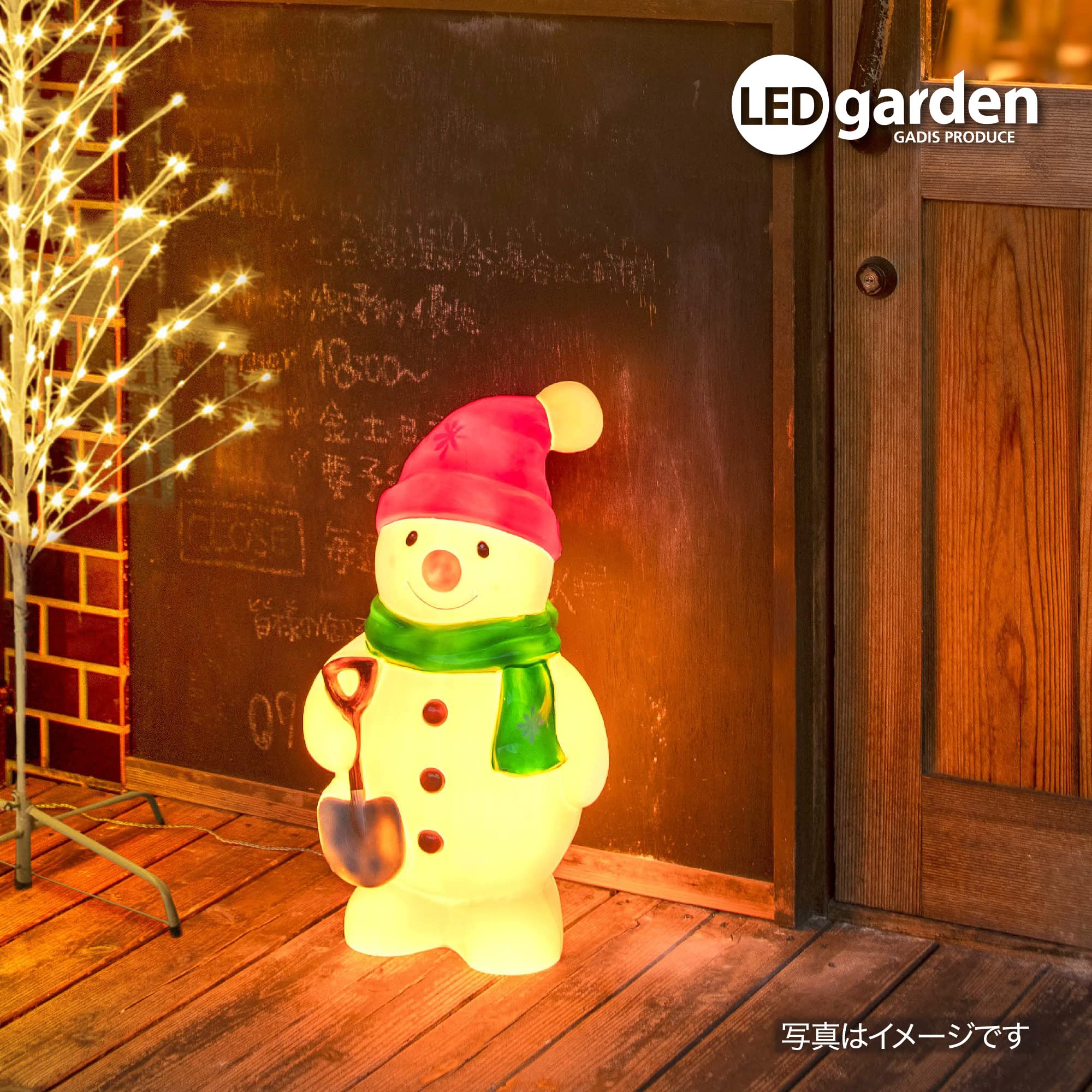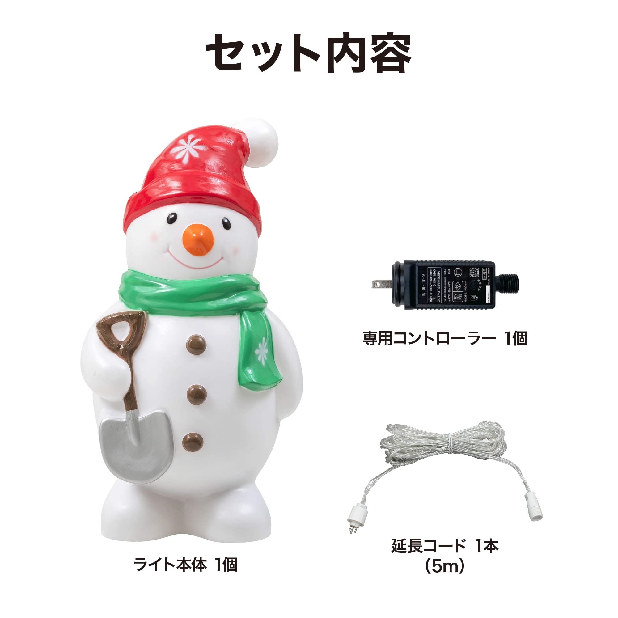 スノーマンがお出むかえ。ワクワク気分を盛り上げるブローライト。ほのぼのとあたたかい気持ちにしてくれます。コントローラーの点灯切替ボタンを押すごとに合計8パターンの点灯が楽しめます。