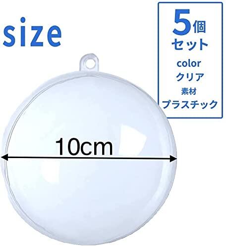 TKY プラスチックボール プラスチック 球 オーナメント ボール 飾り 透明 中空 球体 装飾 収納 DIY5個 セット (10cm)