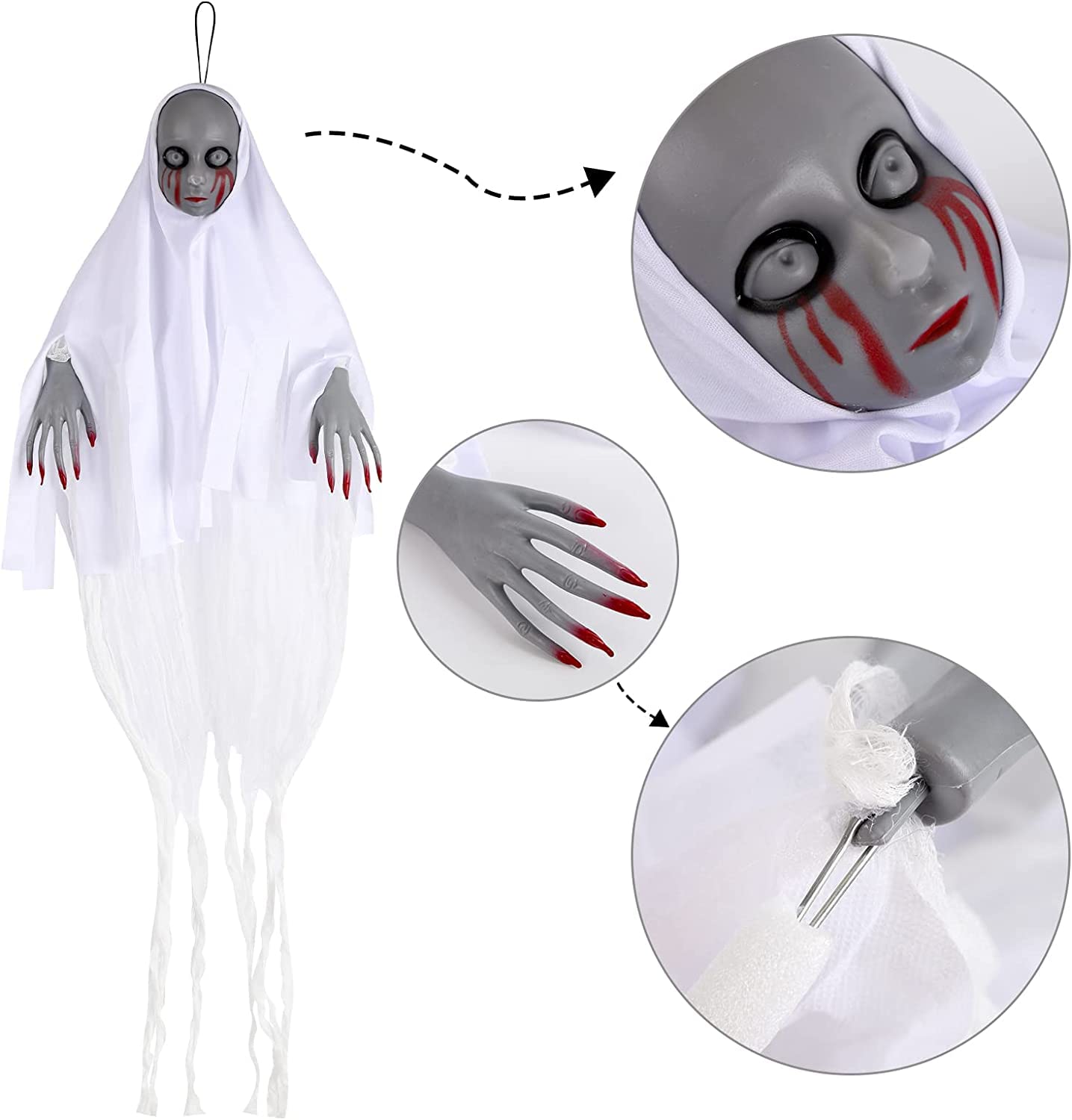 【使いやすい&再利用でき】ハンギング女ゴースト装飾はストラップでデザインされています。とても軽く、どこにでも簡単に吊るすことができます。もし再利用したいなら、持ち出すだけていいです。折り畳めるから、収納も簡単です。