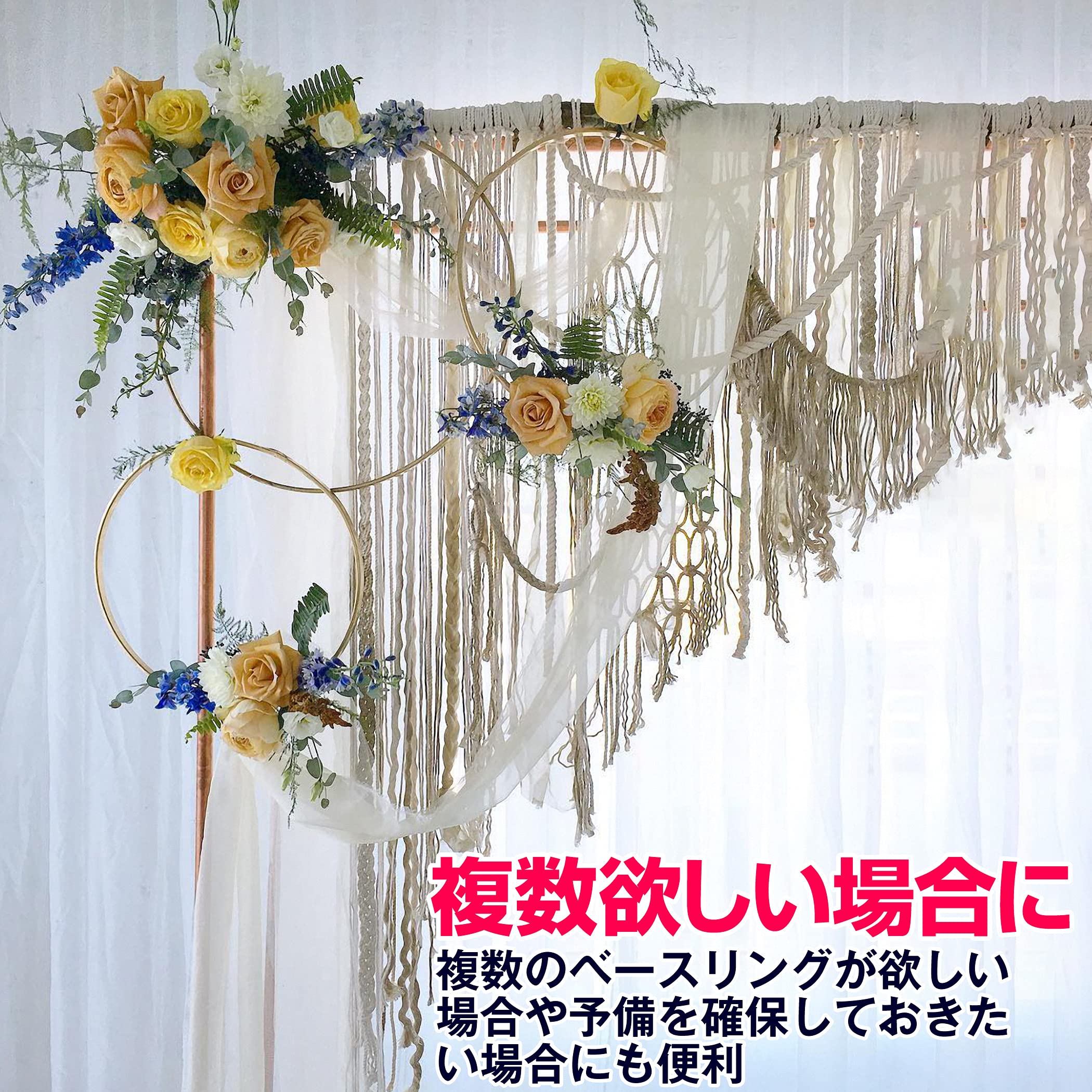 サイズを選べるベースリングセット:直径約15cmから直径約30cmの4種類のサイズの中から、つくりたいフープリースに合わせてベースを選ぶことができるベースリングセットとなっております。思い通りのフープリースをつくりやすいといえるでしょう。