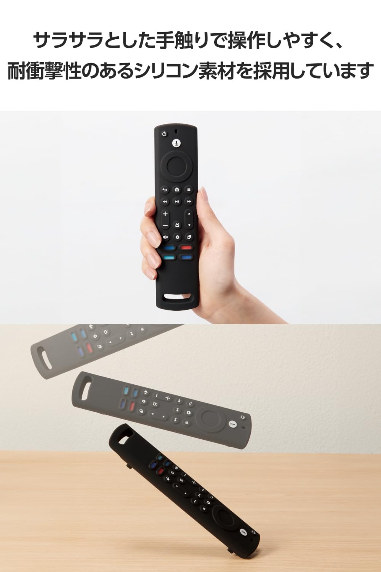 ■シリコンカバーを装着することで、リモコンの傷つき防止にもなります。