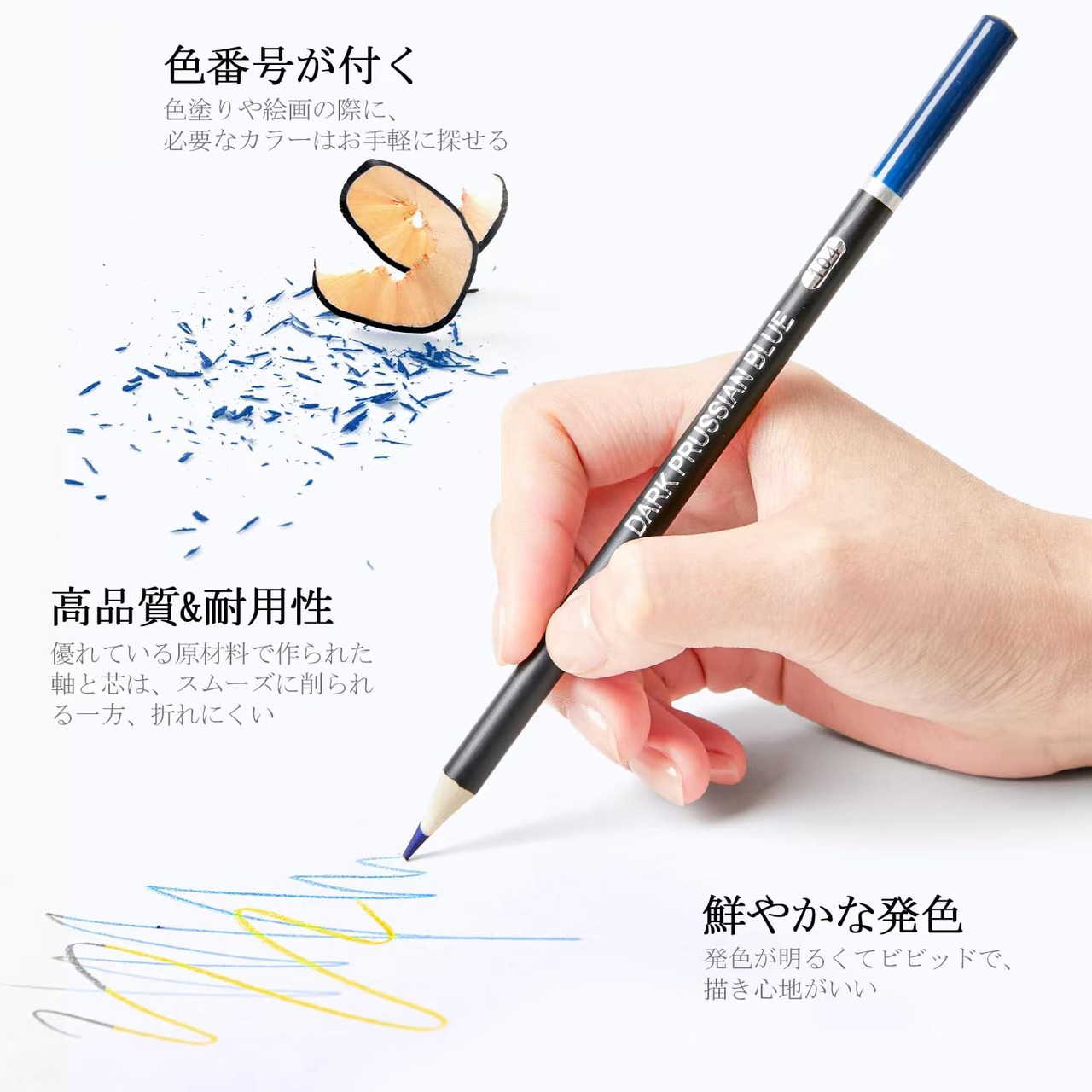 【高品質でおしゃれ】鮮やかに発色し、なめらかなタッチで紙への定着性に優れています。ほどよい硬さの芯なので、柔らかい塗心地が楽しめます。3mmの太い芯は削る時に折れにくく、耐用性が良いです。上品な缶ケースはお洒落で丈夫な作り、セット内容をきちんとパッキングし、鉛筆先の折れる心配もありません。高級感がありますので、大人の色鉛筆としても好まれます。