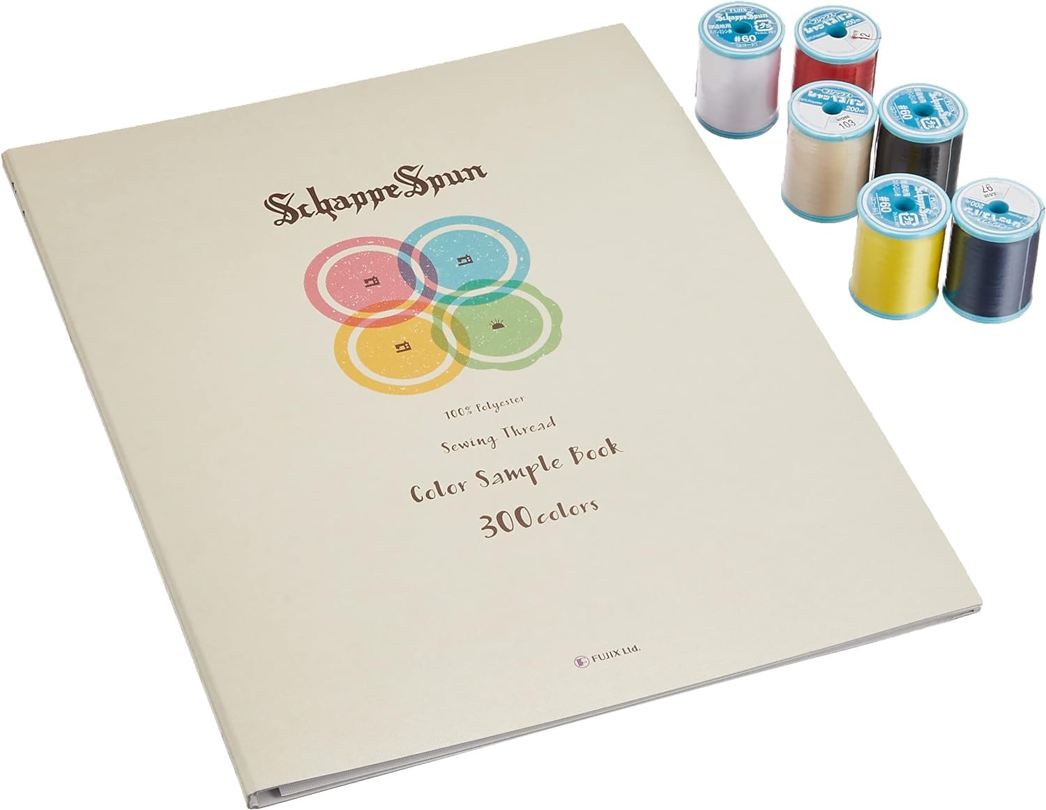 高級ミシン糸の「シャッペスパン」人気6色と、全300色の現物付き見本帳のお得なセットです。