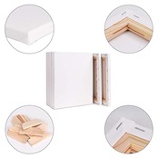 【仕様&丈夫な梱包】:135x180mm、180x240mm、242x336mm、318x410mm 各3個/12枚セット【生地】:綿化繊混紡【フレーム】:ライト木枠、張りキャンパスはプラスチックフィルムで包まれています。また、四隅はコーナープロテクターがあります、張りキャンパスをしっかり保護し、耐久性ときれいにするために設計されています。