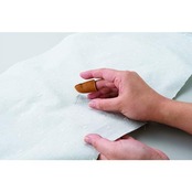 立体縫製の技術により実現。指のかたちにぴったりフィットしたこれまでにない形の皮シンブル。トップからサイドmで継ぎ目がなく、腹側は全面二重皮で安心。