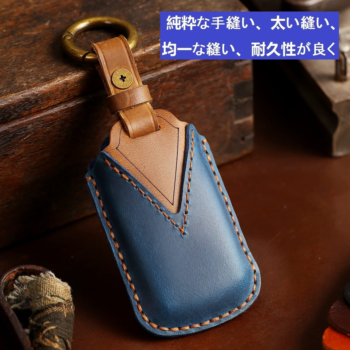 [YANMW] キーケース適合トヨタダイハツ タント タントカスタム タントエグゼ ムーヴ ムーヴカスタム パッソ ミラココア ブーン COO レザー キーホルダー 本革キーカバー (ブルー)
