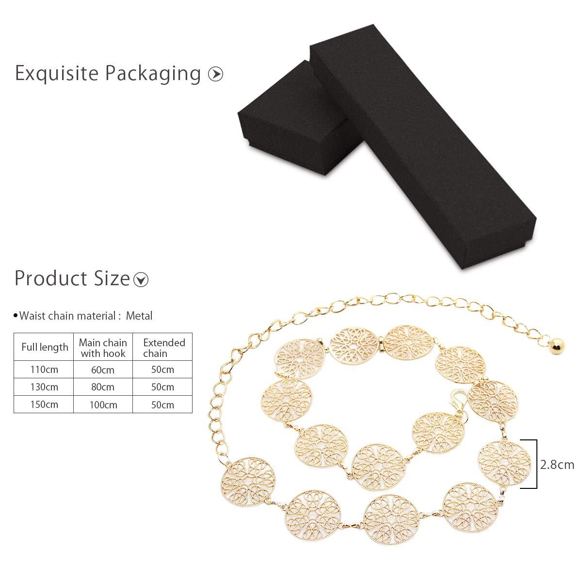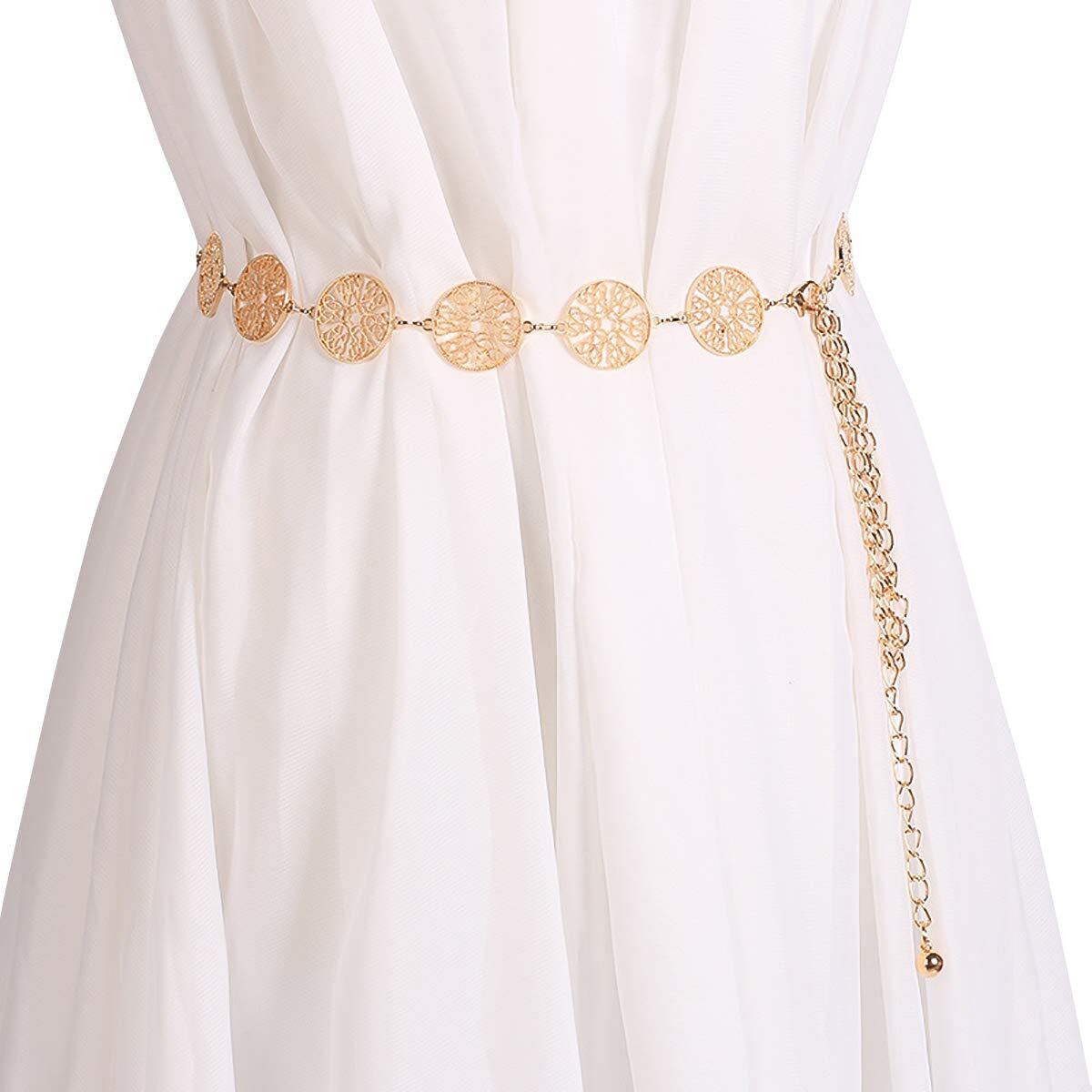LumiSyne ファッション チェーンベルト レディース レトロ透かし彫り金属リング ウエストチェーン シルバー ゴールド 腰部飾り 調節可能なバックル ドレスベルト 花嫁リボン ボディチェーン