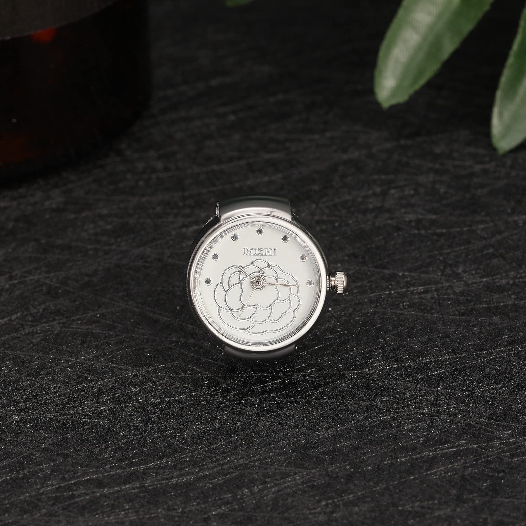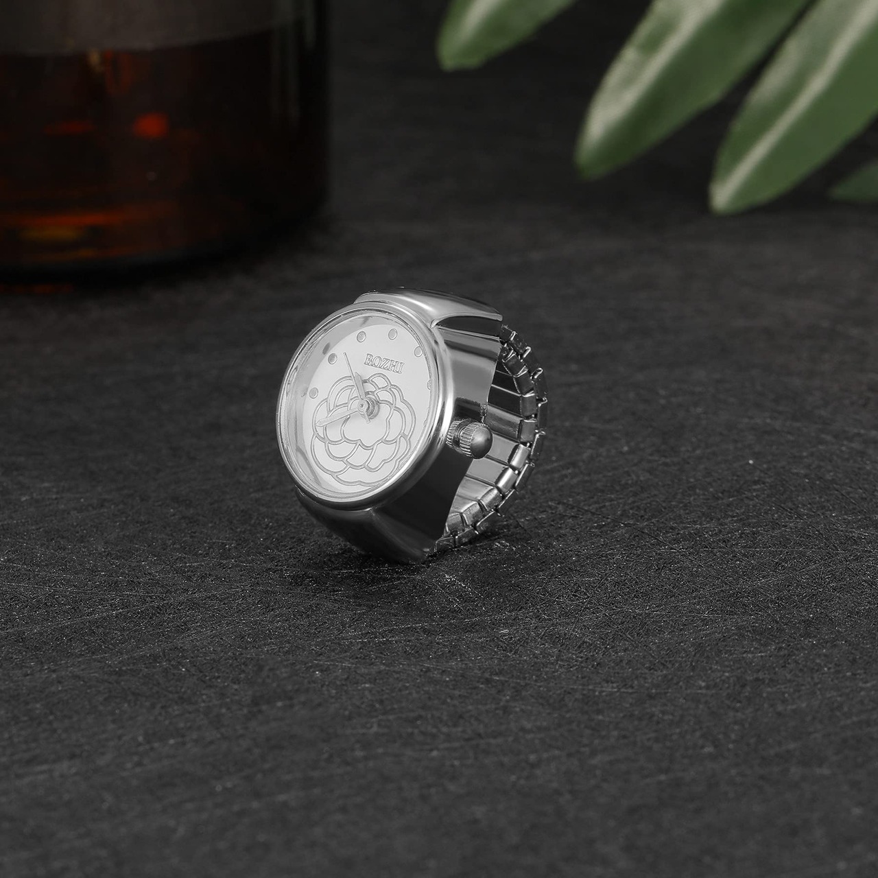 Lancardo 指輪 花時計 リングウォッチ フリーサイズ リング時計 指輪ウォッチ 蓋 カバー 付き メンズ レディース アナログ 見やすい 日常生活 アクセサリー 通勤 クリスマス プレゼント 誕生日 記念日(シルバー)