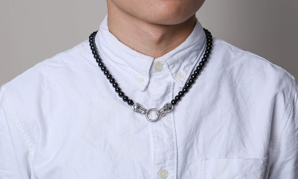 【スカルペンダントブラックオニキスネックレスのサイズ】:幅:10.5mm、長さ:20mm、重量:60g、チェーンの長さ:600mm【素材】スカルペンダントとリングペンダントは本物のステンレススチール製で、100%安全に着用でき、変色せず、錆びず、アレルギーもなく、鉛フリー、ニッケルフリー。 ビーズはオニキスです。