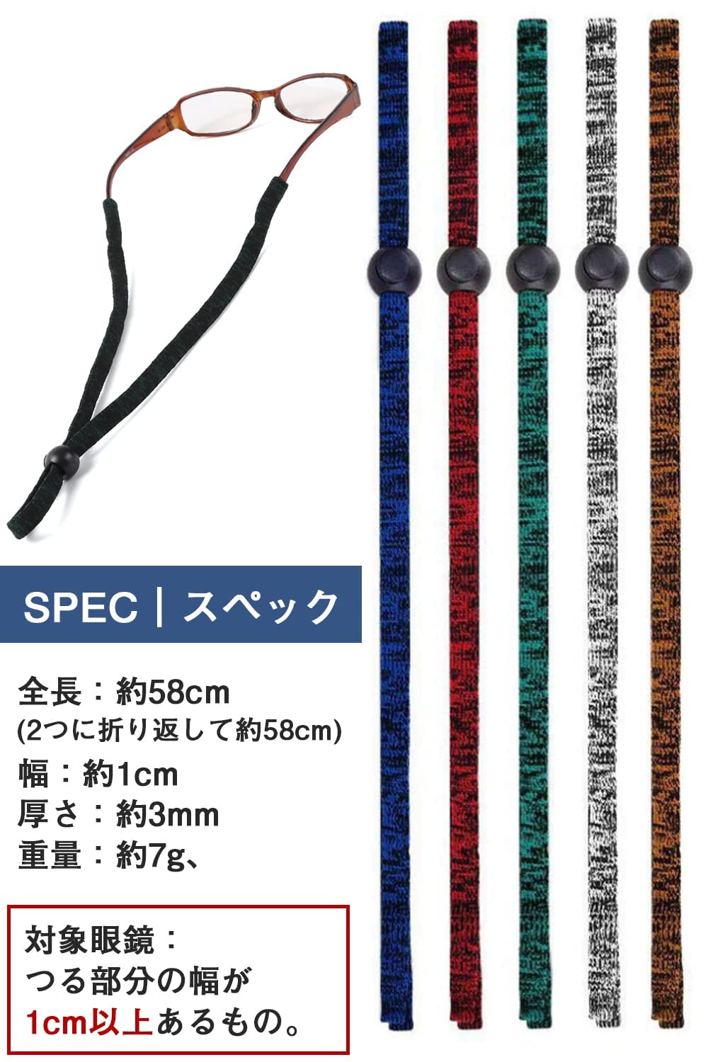 全長:約58cm(折返し状態)/幅:約1cm/厚さ:約3mm/重量:約7g/対象眼鏡:つる幅1cm以上