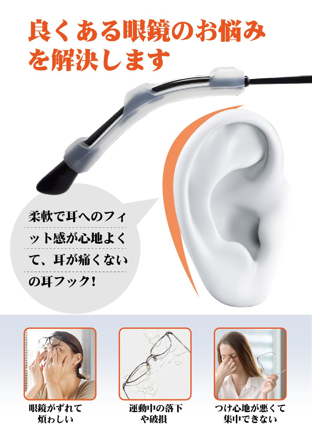 【新着商品】[Marcea] 2024年改良モデル メガネ固定器 めがね固定 メガネ フックメガネ ズレ落ち防止 目立たない 柔らか 弾性 軟質シリコーン 滑り止めすり落ち防止 耳が痛くない サングラス アクセサリー スポーツ用 | ニコニコSHOP