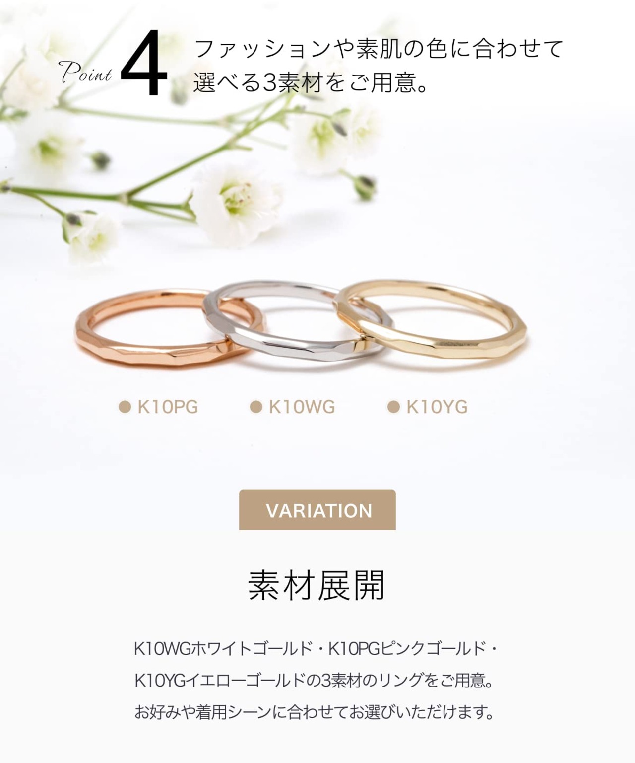【こだわりのデザイン】シンプルかつスタンダードでありながらゴールドの輝きが洗練された印象を与えてくれるカットリング。光を受ける角度によって違った表情を楽しめ、手元で美しく煌めきます。長く愛用できる飽きのこないシンプルなデザインなので、普段使いとしてご使用頂けます。自分へのご褒美に、または様々な記念日の贈り物にもおすすめなアイテムです。