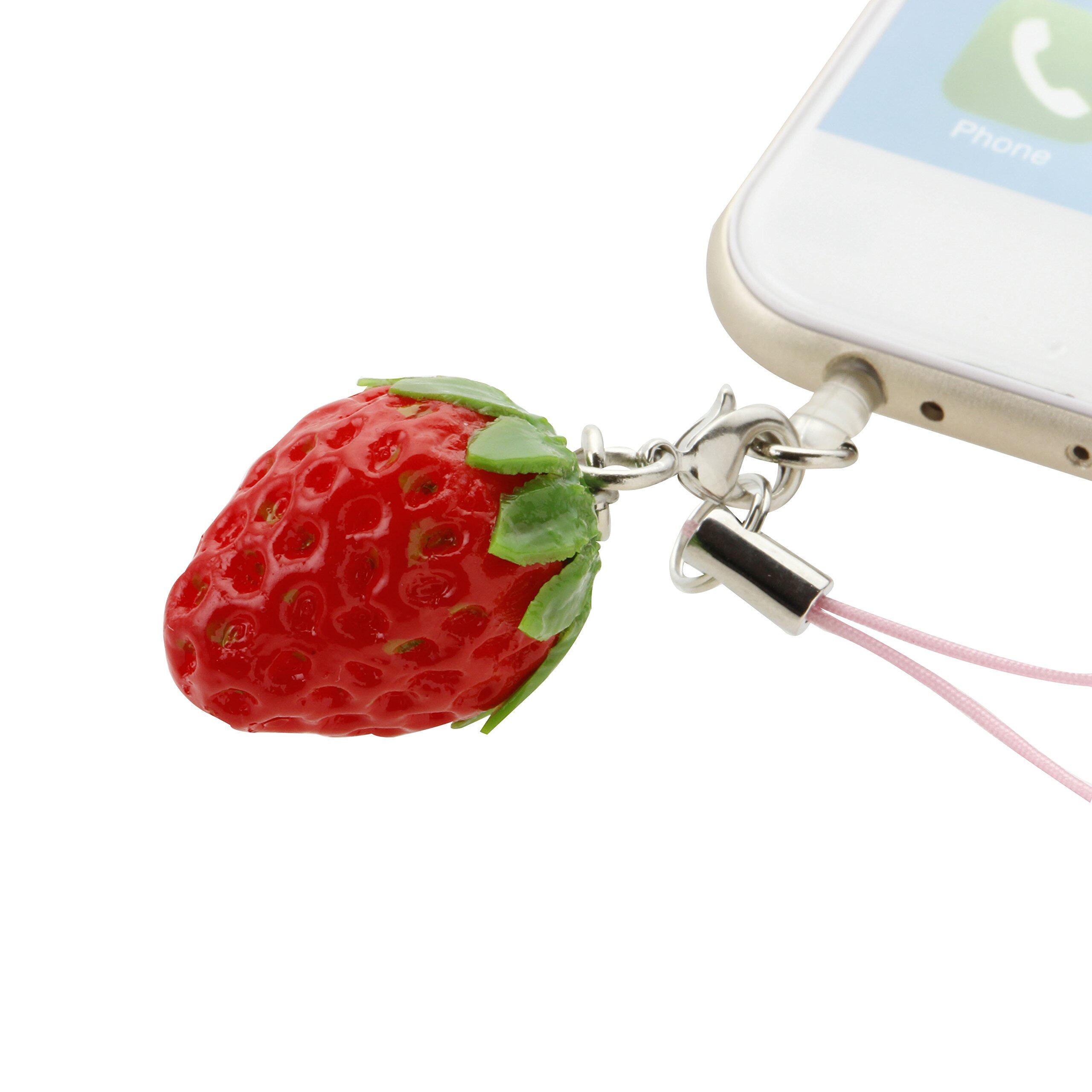 末武サンプル 食品サンプル屋さんの携帯ストラップ付きイヤホンジャック イチゴ 3way-11237