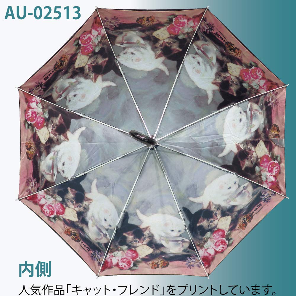 ユーパワー 名画折りたたみ傘(晴雨兼用) ヘンリエッテ ロナーニップ「キャット・フレンド」 AU-02513 広げた時のサイズ:直径85×長さ73cm、親骨の長さ:49cm(8本)